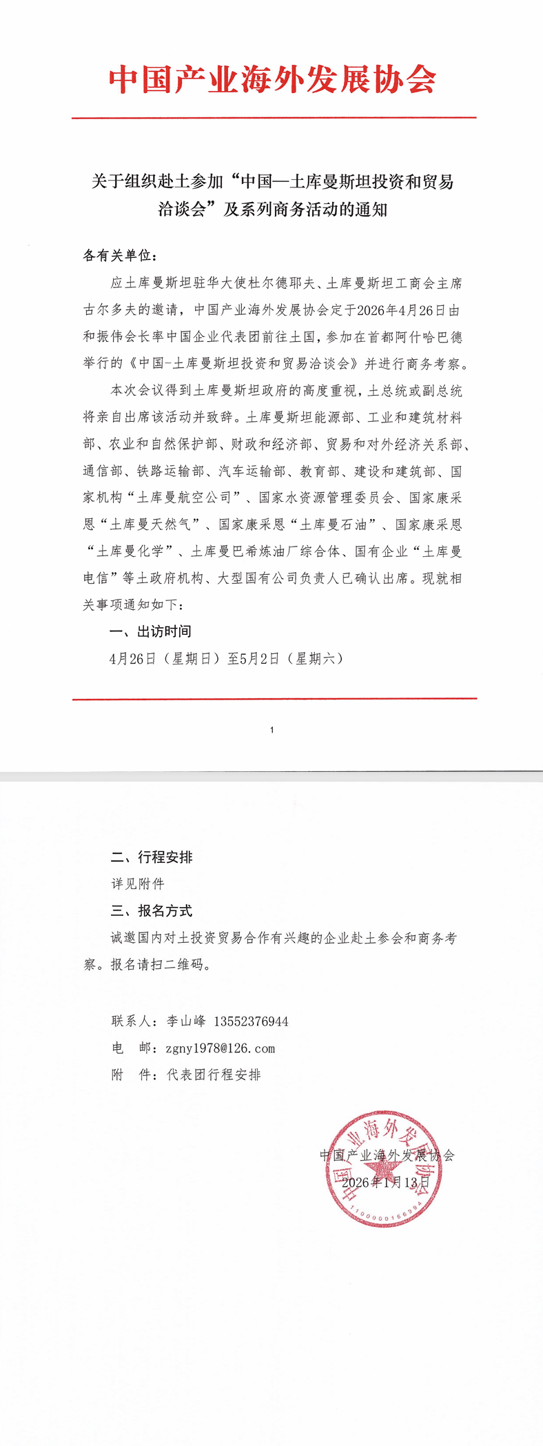 关于组织赴土参加“中国一土库曼斯坦投资和贸易洽谈会”及系列商务活动的通知
