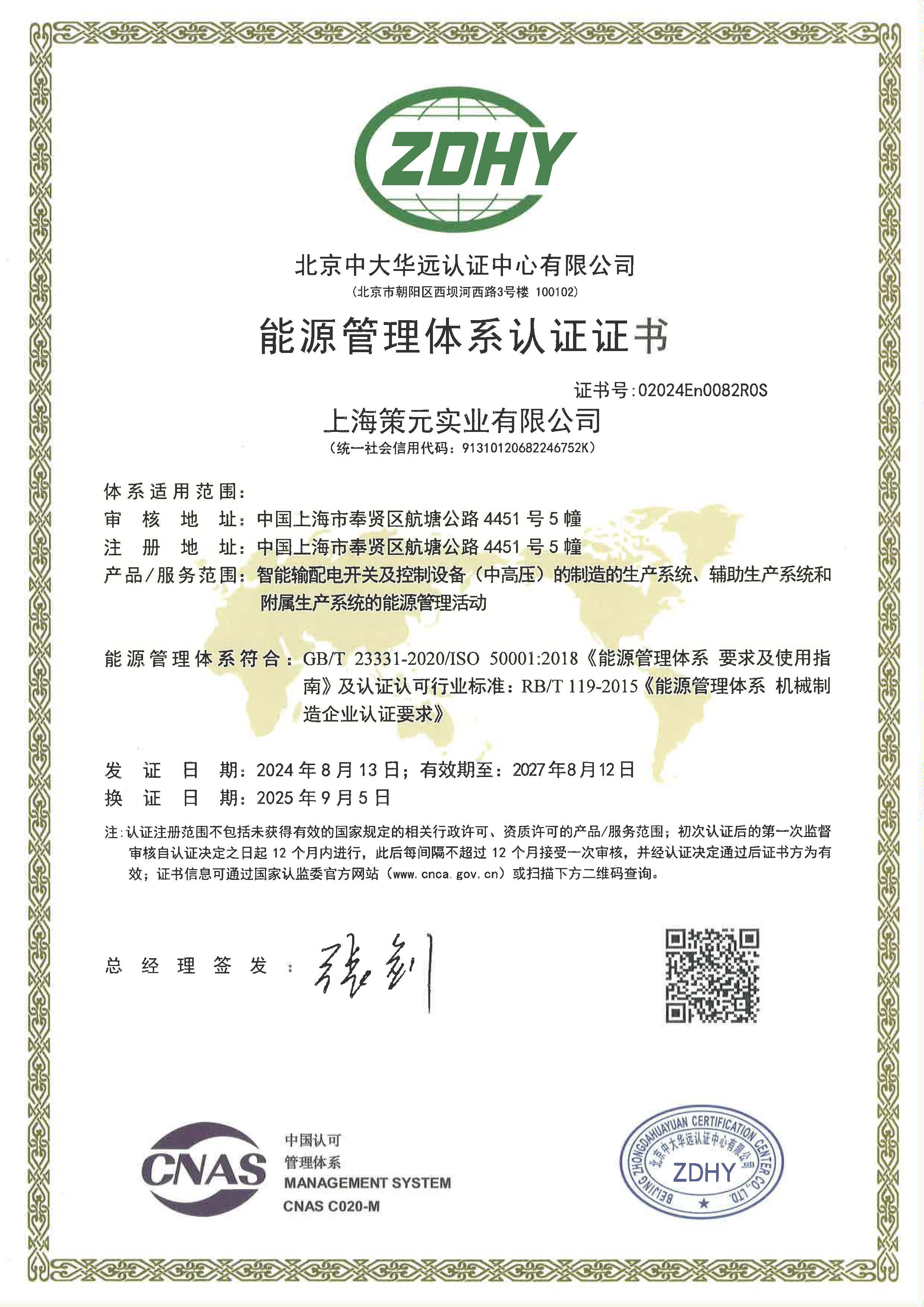 上海策元实业有限公司创立于2008年,注册资金5100万元,是上海市高新技术企业、专精特新企业。公司自成立以来始终致力于环保型中、高压电力产品的研究、设计和生产,追求为电力行业用户提供低碳、安全、智能的电力系统解决方案。