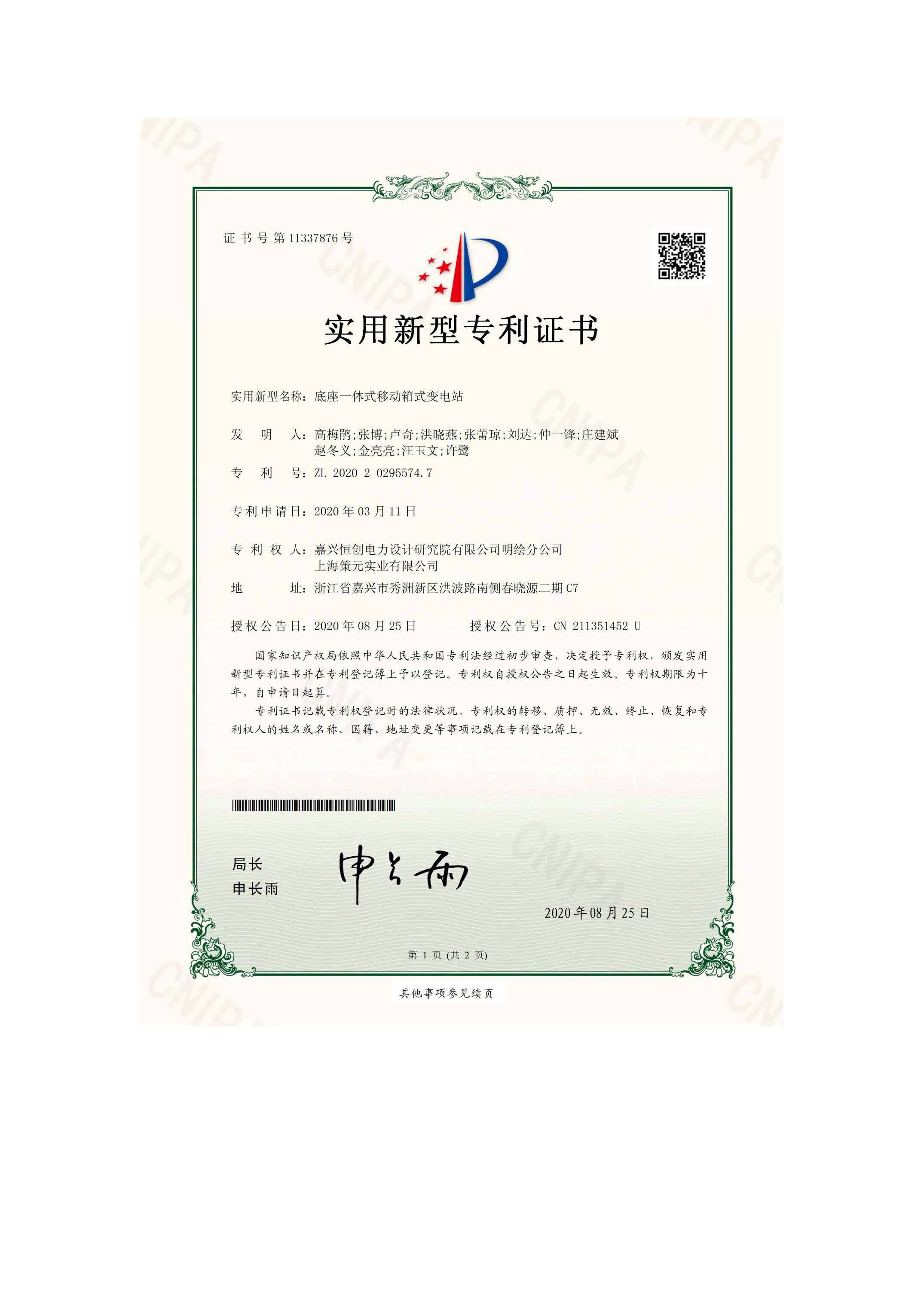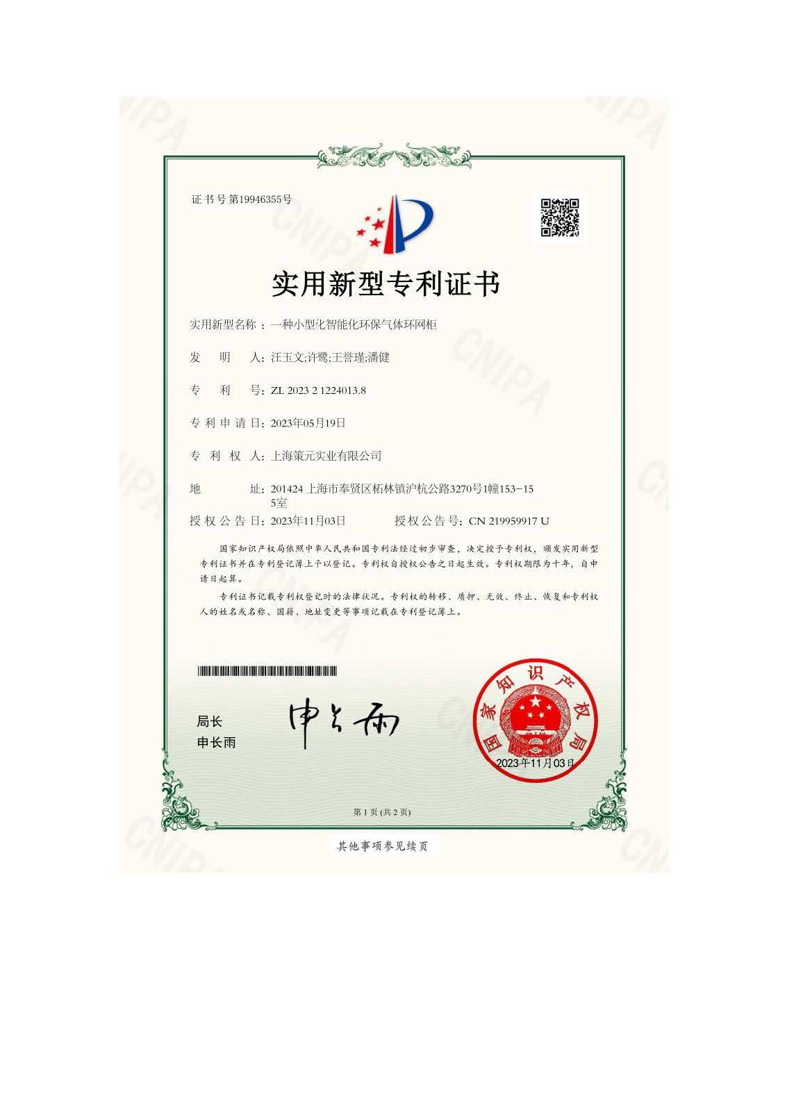 上海策元坚持产学研深度融合以及不断地技术创新,与同济大学、西安交通大学以及上海电力大学等高校建立了紧密的科研合作关系,另与浙江大学湖州研究院共同设立了低碳发展电气实验室。目前企业专利合计72项,其中发明专利25项,另有3项发明专利申请已获受理。通过对研发的不懈积累,目前公司已经打造了一个融汇中压开关技术、低碳技术、一二次融合技术、智能化感知技术、自动化生产技术的综合技术平台,形成了以智能环保开关设备、风电专用电气成套设备、“空天地”数字化前线移动指挥系统、电站无人机应用及反制方案为主的四套产品布局。