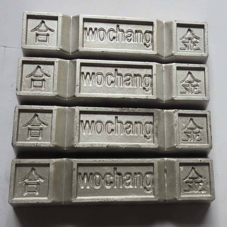沃昌合金主营有:|铅铋合金|铅锑合金|低熔点合金|伍德合金|锡铋合金|铅锡合金锌基合金|低温锌合金|低温锡焊料|铟锡合金|巴氏合金|铅基合金|锡板|锡球|镁(镉)锌合金;有色金属材料分别为:锡锭|铅锭|锑锭|铋锭|镉锭|铟锭|锌锭等;合金材料可以按客户要求订购各种锭状,板材以及棒材等。