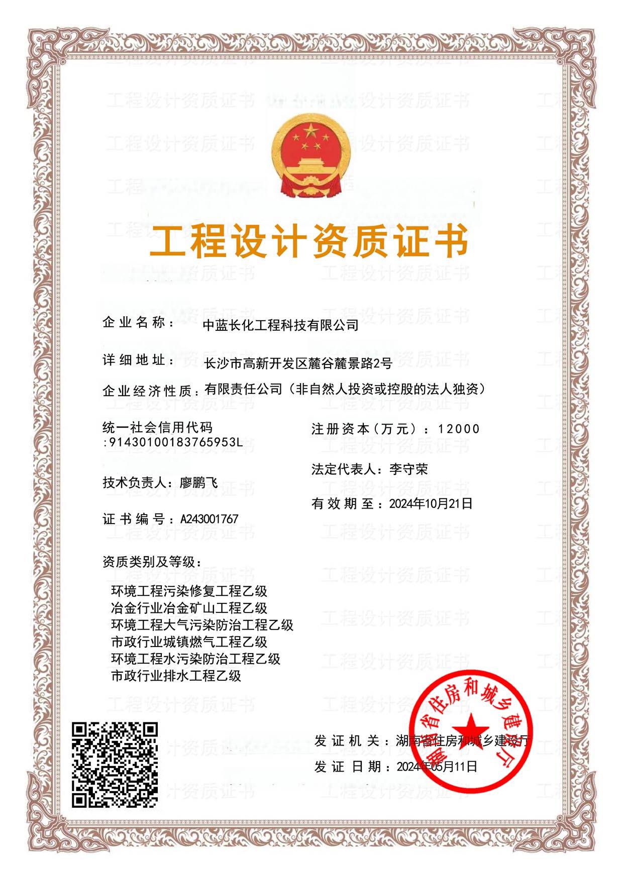 - 公司拥有石化医药行业甲级、矿山、建筑、市政环境卫生工程、环境工程设计甲级,岩土工程勘察甲级,建筑、化工、矿山、市政工程监理甲级和工程咨询资信甲级资质证书,以及冶金、规划、市政排水、市政燃气、废水治理、废气治理、污染修复工程设计乙级,水文地质、工程测量勘察乙级和电力、冶炼工程监理乙级资质证书,并具有压力容器、压力管道设计资格和环保工程专业承包壹级资质,可承担各类大中型矿山工程,化工石化医药全行业工程、工业与民用建筑工程、市政公用工程和环境保护工程的勘察、设计、监理、咨询和工程总承包业务。