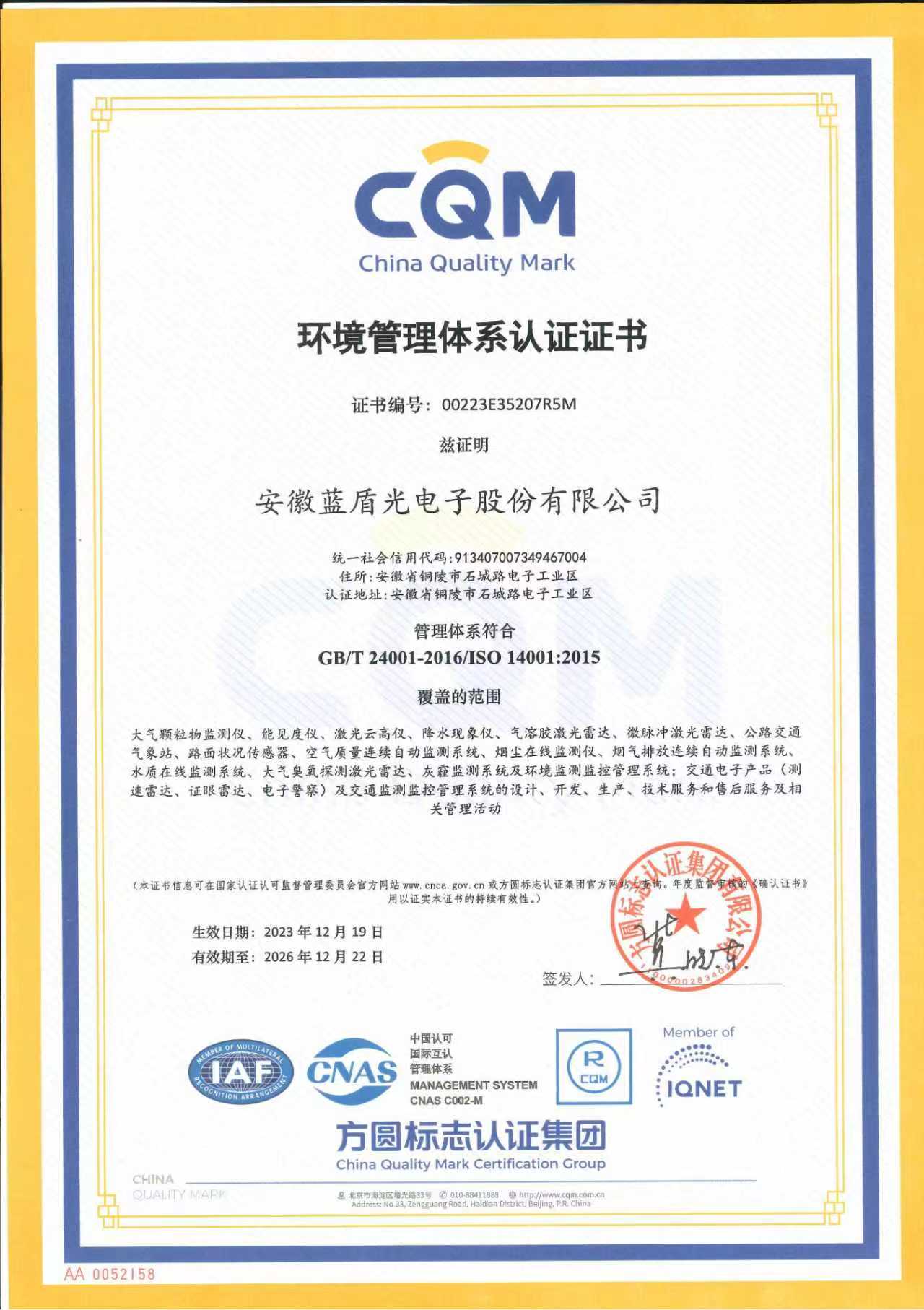 安徽蓝盾光电子股份有限公司(股票代码:300862)是一家高新技术企业,公司在光学、电子及信息技术、精密机械制造等领域积累了五十余年的科研、生产经验,主要致力于高端分析测量仪器制造、软件开发、运维服务、数据服务,产品和服务主要应用于环境监测、交通管理、气象观测等领域。