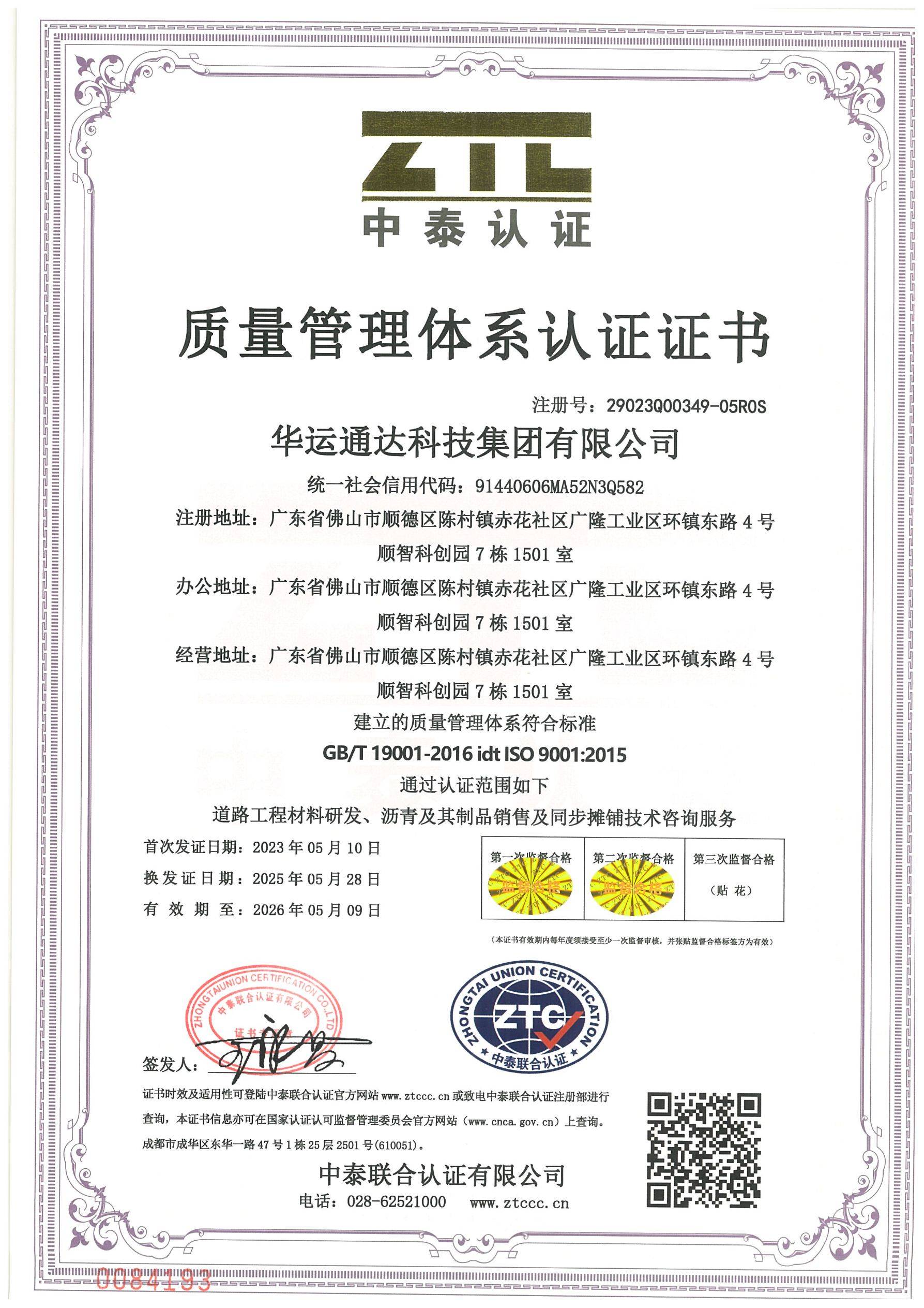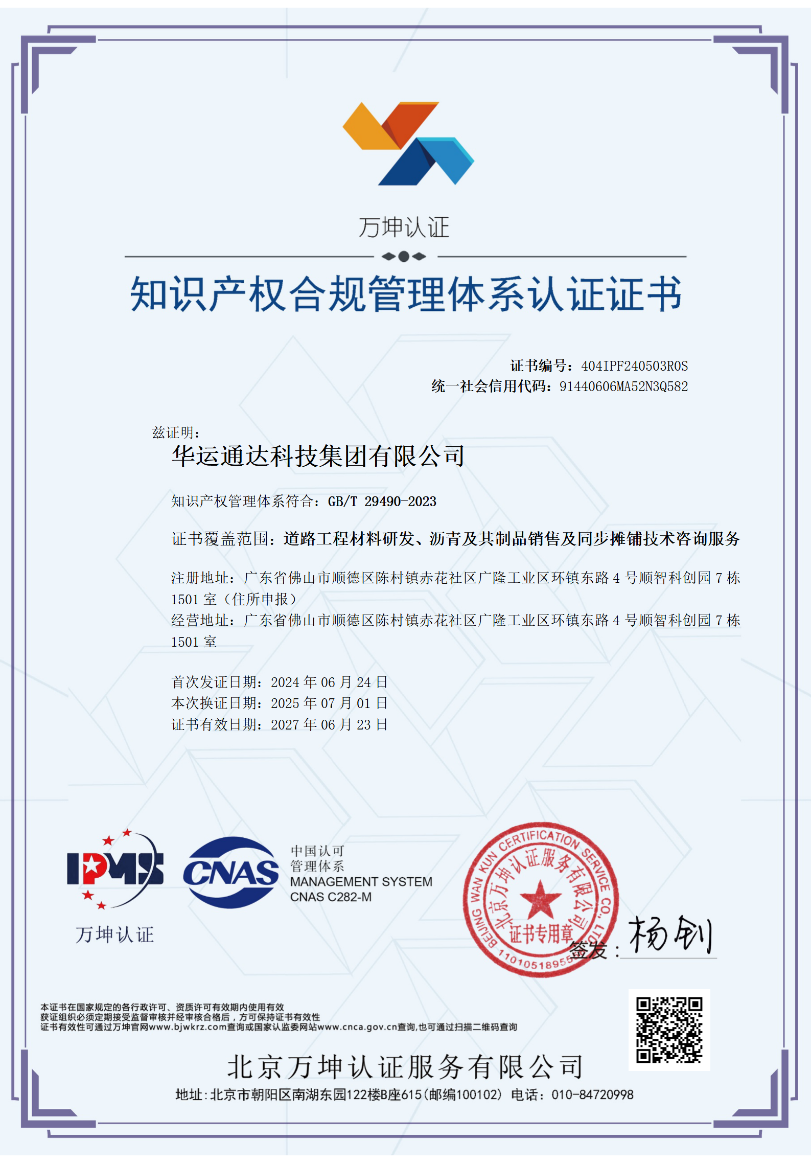华运通达科技集团有限公司是由华南理工大学和社会资本共同出资成立的混合制企业(注册资本5103.86万元),属国家高新技术企业、国家级专精特新“小巨人”企业、中国公路学会科技成果转化基地、广东省制造业单项冠军示范企业、广东省知识产权示范企业,公司致力先进道路工程材料的研发、生产与推广事业,汇聚20余载的科技攻关和实践创新积累,在绿色低碳高性能道路结构与材料领域取得了长足的进步,是高性能沥青材料和超薄路面技术的行业引领者。