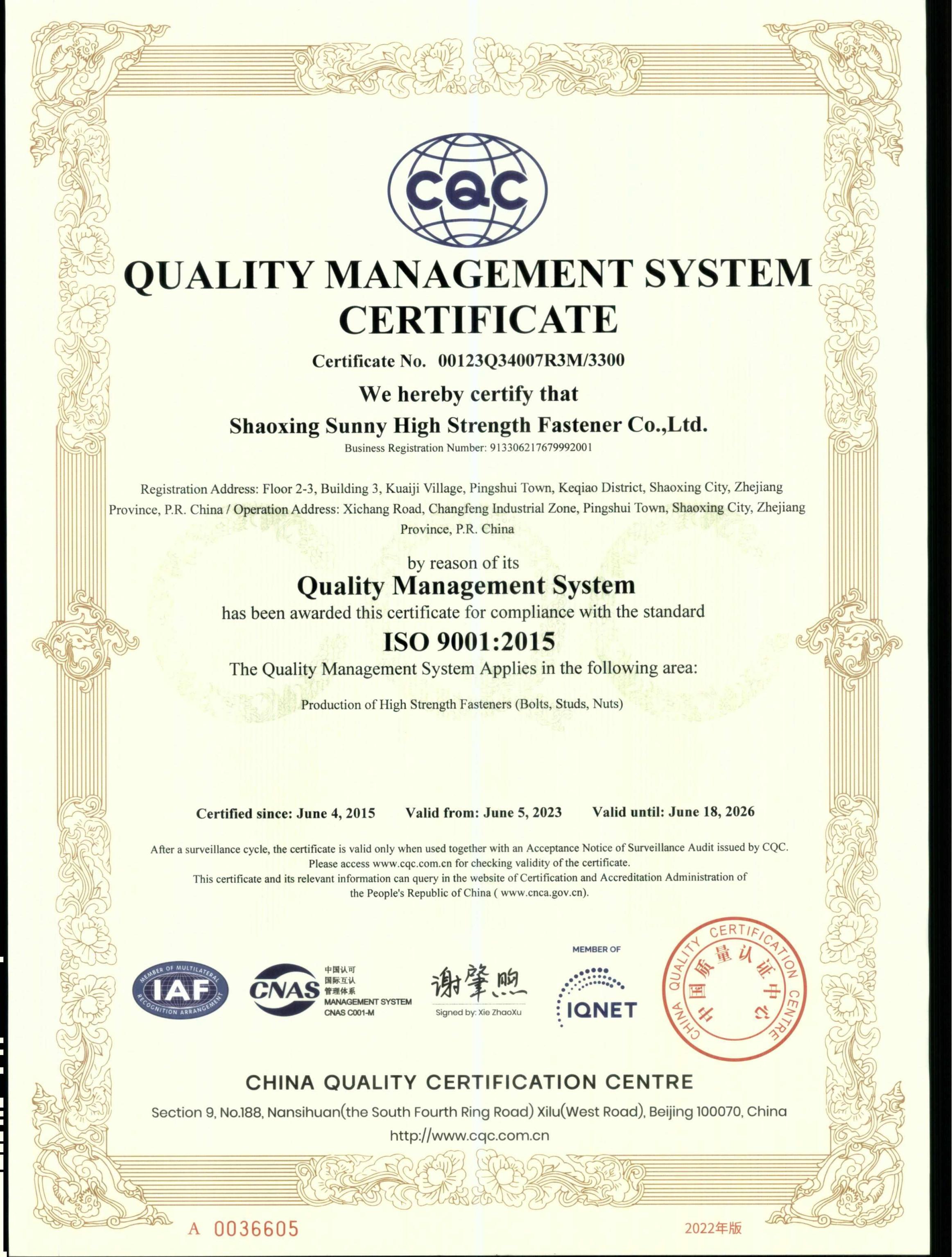 国内一流工程紧固件制造商。专业为石油、石化、化工、核电等行业作紧固件打包配套生产商,产品具有产品链长、标准覆 盖广、材料品种多、适用工况环境复杂等特点。绍兴山耐高压紧固件有限公司系设计、生产、检测、自营进出口于一体的专业工 程紧固件制造商,是国家紧固件标委会和国家螺纹标委会委员单位和国家高新技术企业。主要产品为M3-M150;1/16"-6"耐高 压、耐高低温、耐腐蚀的高强度螺栓、螺柱、螺母、垫片及其他非标紧固件。 不断追求产品质量提升和最严格的质保体系。生产的可追溯性、质量的可控性、管理的稳定性和优良的使用安全记录。为化 工行业的配套,使用安全、产品质量是第一要务,本公司一直致力于追求最严格的质保体系,以确保客户的使用安全。 聚焦本业,省级专精特新企业,力争行业先进。多次参与国际标准制定,牵头并参与多个国家、行业、地方标准制定,积极 提升企业信息化管理水平。公司于2012-2017年连续作为中国标准化委员会代表团成员参与ISO/TC2(紧固件)国际标准制定, 并在2022年再次代表中国螺纹委员会参与ISO/TC1国际标准制定,于2018年本公司作为主要起草单位,正式发布了“浙江制造” 标准《压水堆核电厂用核级螺栓、螺柱》。 为了能更好地配套采购商对特氟龙涂层紧固件的需求,2022年公司新上了国内先进的特氟龙表面涂层生产线。本公司产品覆盖 核电、石化,所有检测人员和人员资质都是按核电和石化要求进行配置,保证公司所有产品关键技术要求都能达到行业最高要求。 领先的供货业绩、优良的产品质量、可靠的使用安全。本公司的主要客户集中于大型石油、石化、煤化工、核电高端领域, 如万华化学、中石化、中海油等都是本公司多年合作的重要客户。