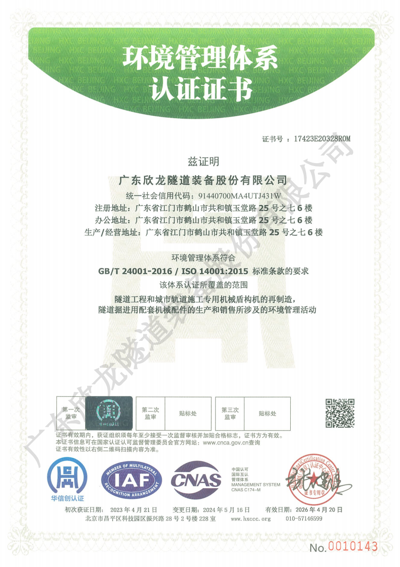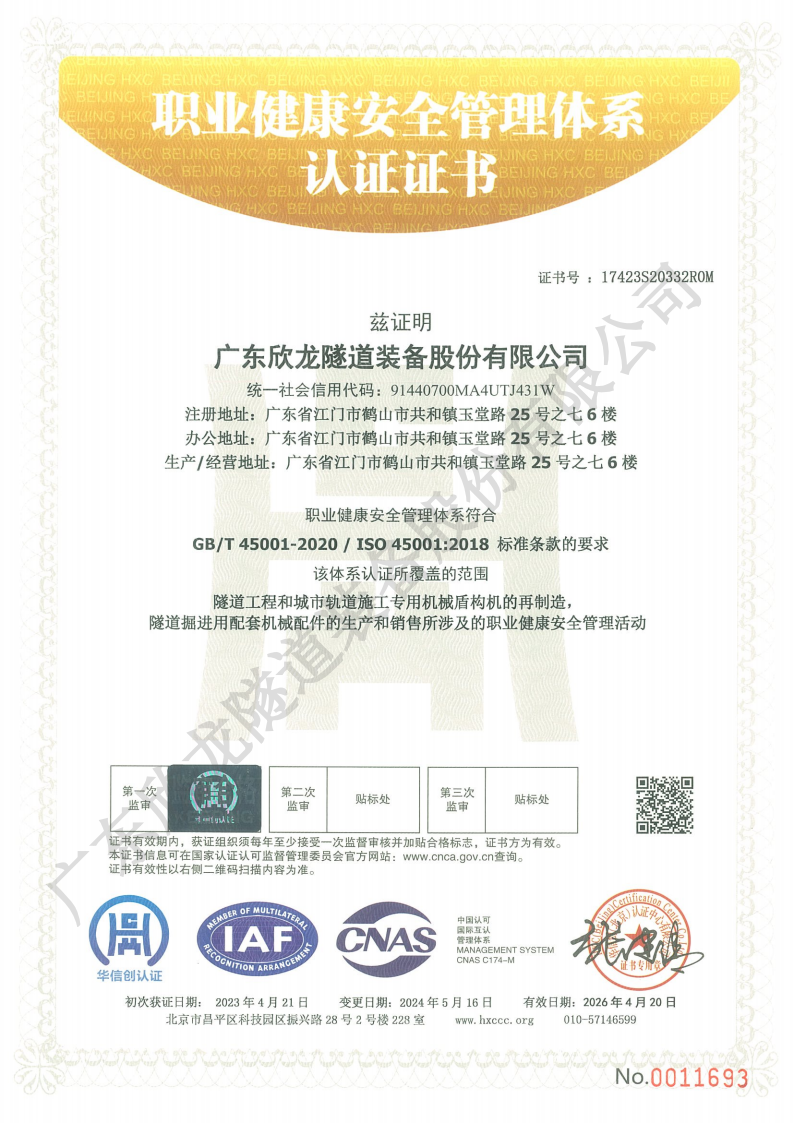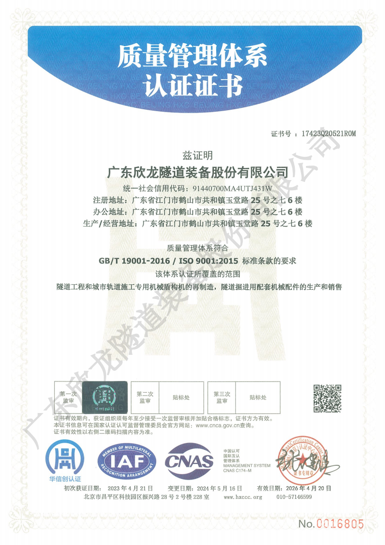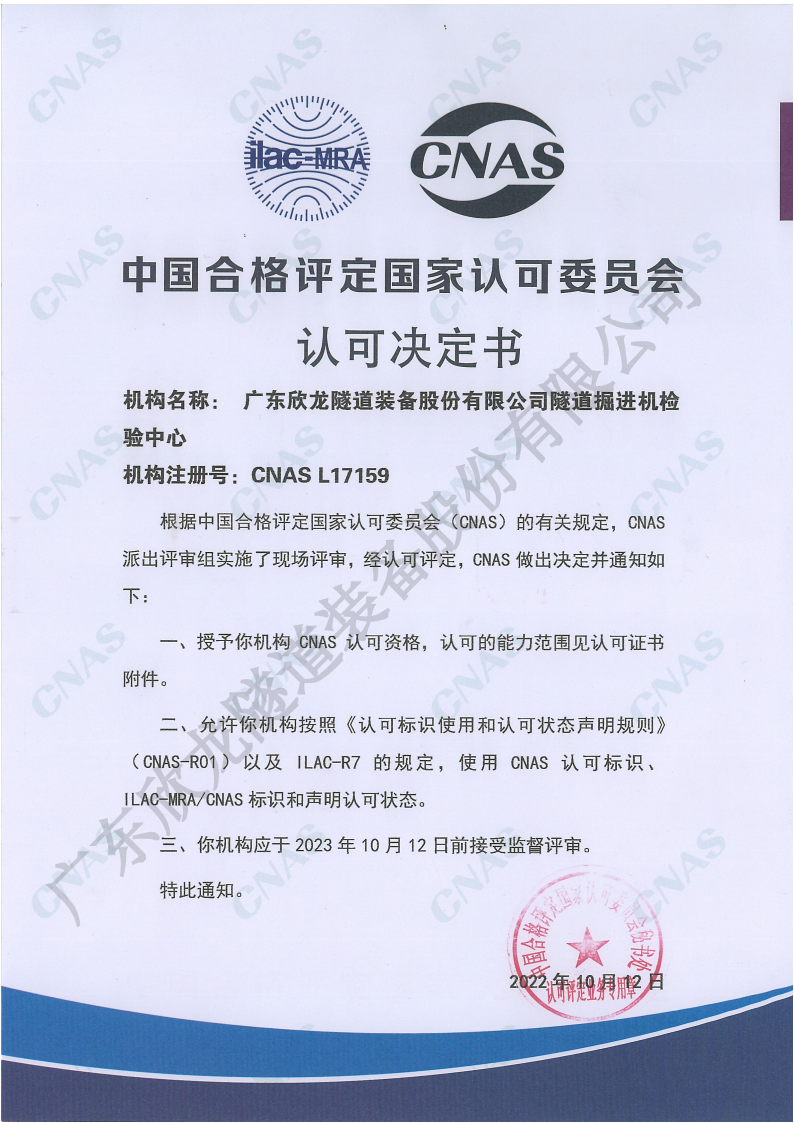 欣龙装备公司成立于2015年6月19日,位于广东江门鹤山市新材料产业基地共和园区,距离佛山约50公里,广州市中心约80公里,公司一期占地面积约100亩,二期占地面积约500亩,三期占地面积约500亩。欣龙装备公司于2018年荣获江门市工程技术研究中心及新上规模的高科技创新企业欣龙装备2019年被评为高新技术企业,2020年获得ISO9001质量管理体系认证、ISO14001环境管理体系认证,截止至今获得隧道建设工程材料或隧道工程机械等大型设备的研发相关的专利约56个,其中发明专利19个,实用新型专利37个。2020年完成了再制造隧道掘进机申报工作,2022年7月顺利通过CNAS实验室认可资质评审。2019年与中铁工程服务有限公司、中交第二航务工程局有限公司工程装备分公司、中铁十四局集团有限公司、中交隧道工程局有限公司北京盾构工程分公司成为合作战略伙伴,业务正朝气蓬勃的发展。
