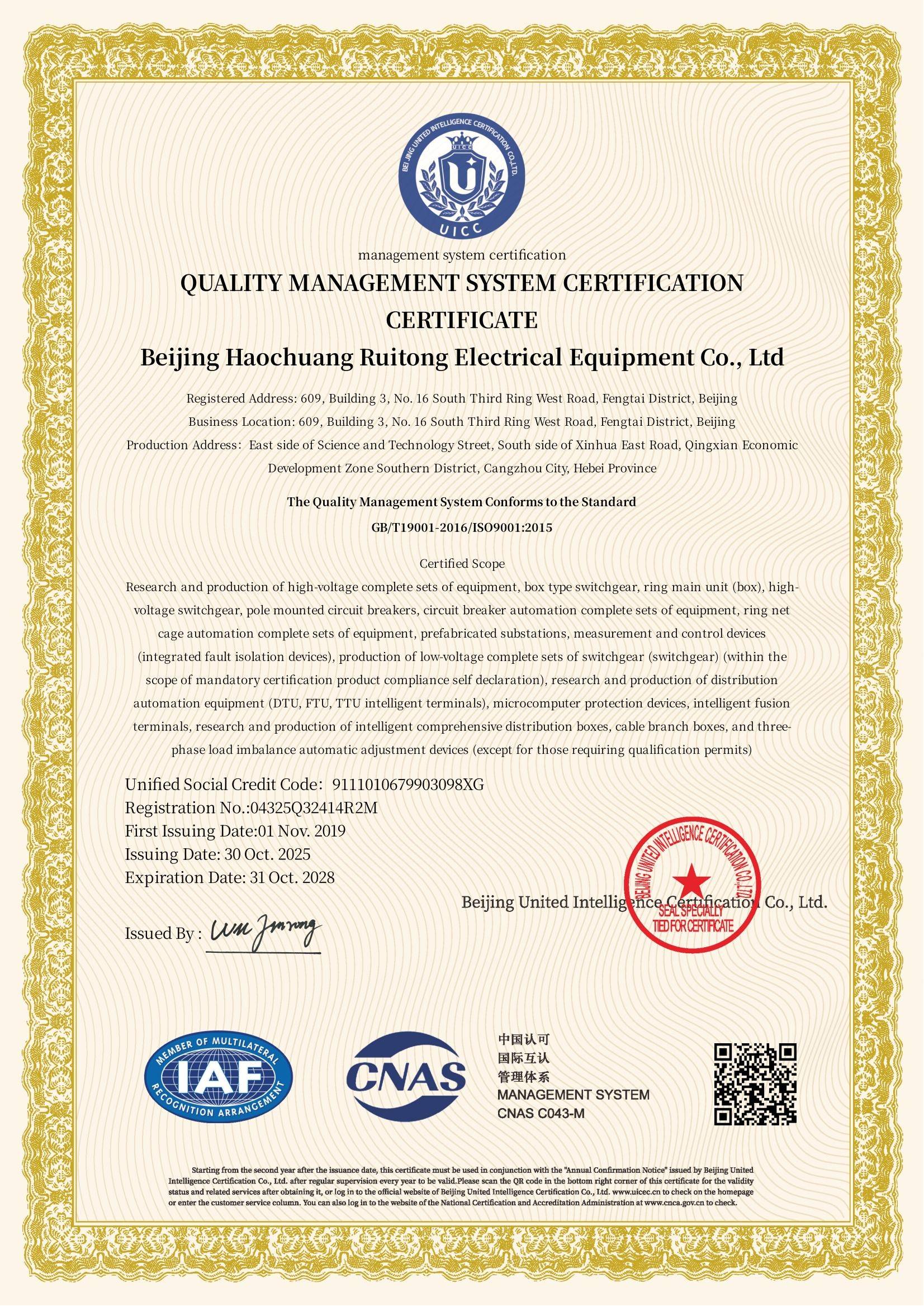 昊创瑞通不仅是国家级专精特新“小巨人”企业、国家级高新技术企业,还荣膺中关村高新技术企业、北京民营企业中小百强等多项殊荣。公司积极参与行业标准建设,担任全国低压成套开关设备和控制设备标准化技术委员会委员单位,并被认定为电器工业标准化示范企业,彰显了在行业内的技术引领与规范制定能力。