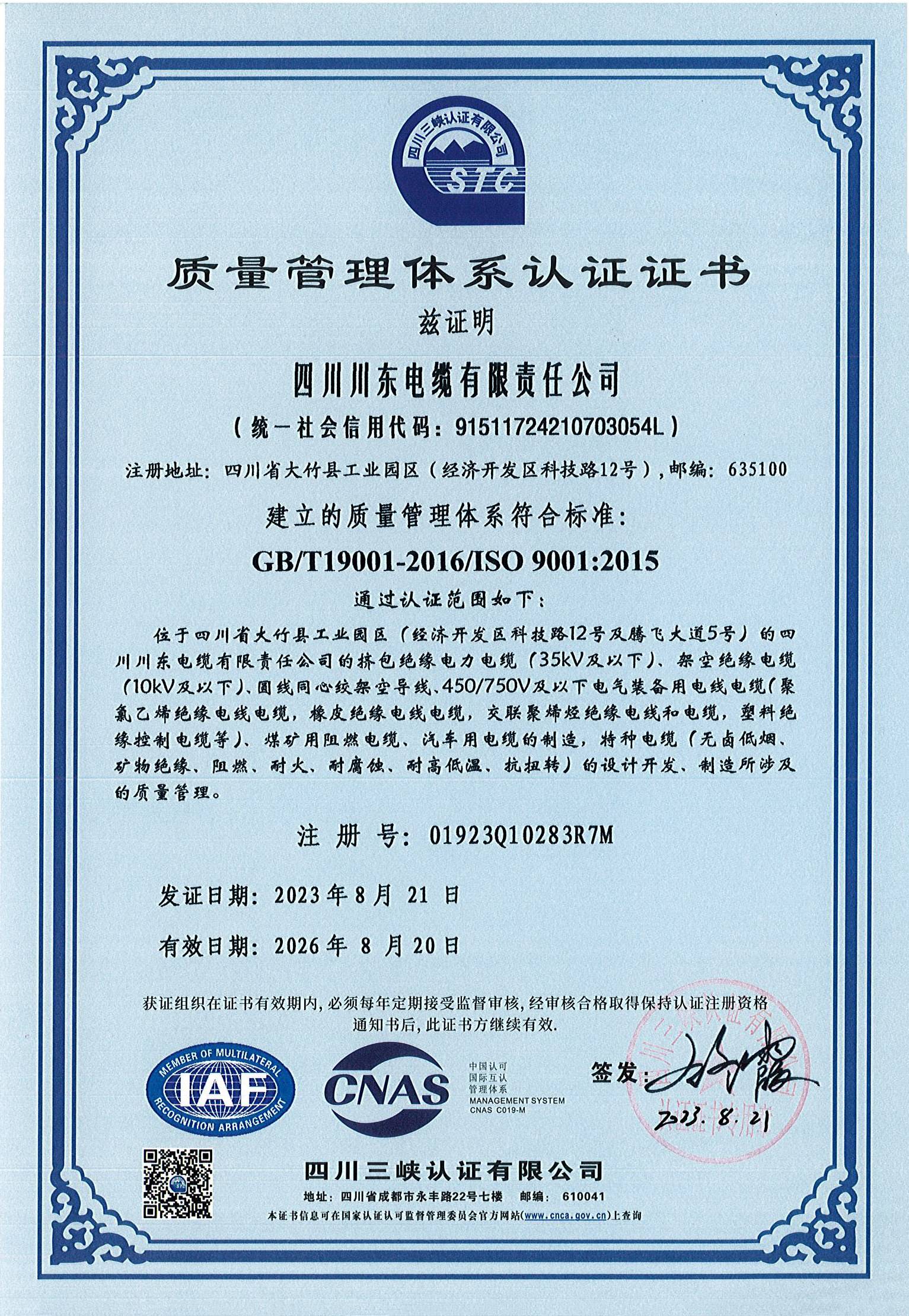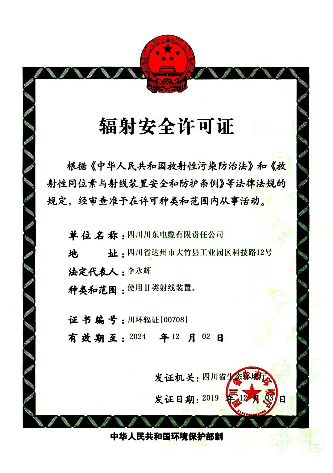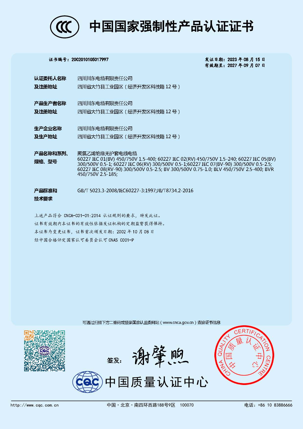 四川川东电缆有限责任公司位于四川省大竹县工业园区,创建于1970年,占地面积210亩。为中国电器工业协会电线电缆分会副理事长单位、国家高新技术企业、“国家级守合同重信用企业”、 “四川名牌产品” 和 “达州市第—届政府质量奖”企业,国家劳动和社会保障部批准的 “机械行业职业技能鉴定线缆四川站”。