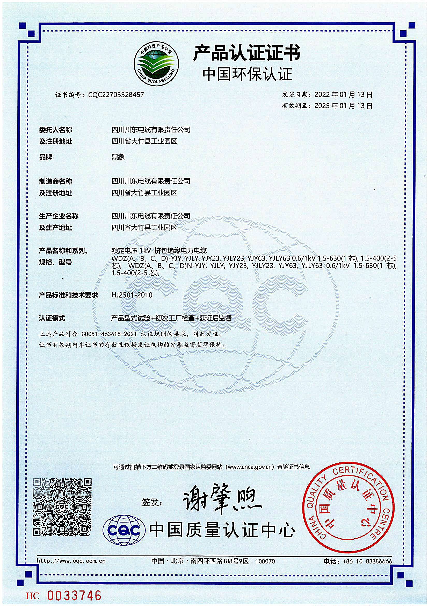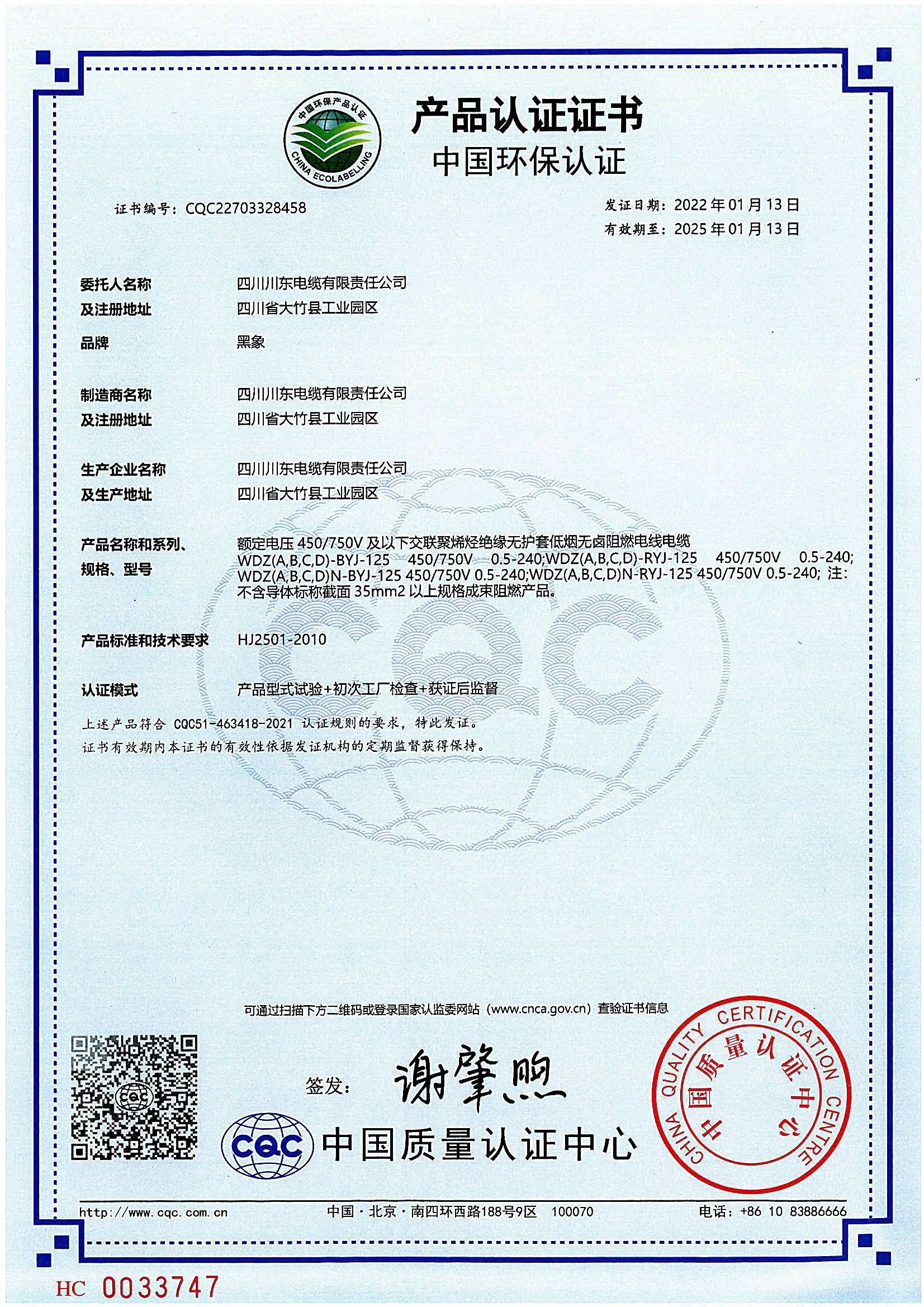 公司生产的 “黑象” 牌电线电缆畅销全国各地,并远销澳大利亚、哈萨克斯坦、土库曼斯坦等国家和地区。在澳大利亚ABB公司、重庆江北机场、二滩电站、向家坝水电站、国家电网、中国石油、中国铁建电气化局集团、中国航空工业集团、中国人民解放军63820部队099工程指挥部、四川路桥建设股份有限公司南大梁高速项目、川煤集团、贵州盘江煤电、贵州林华矿业、云南东源煤业集团、雷士光电、五粮液集团、玖龙纸业、华润集团、成都飞机工业集团、海螺水泥等单位获得广泛运用。