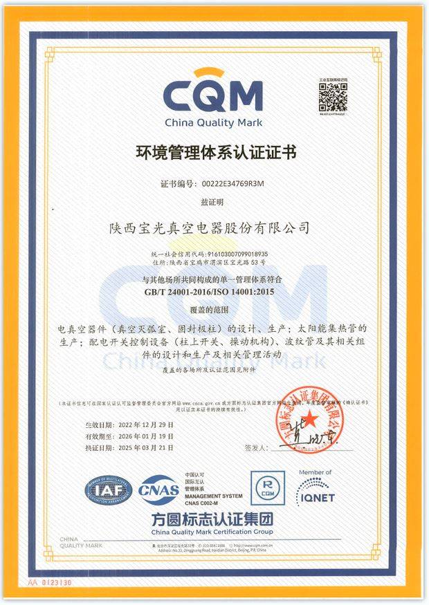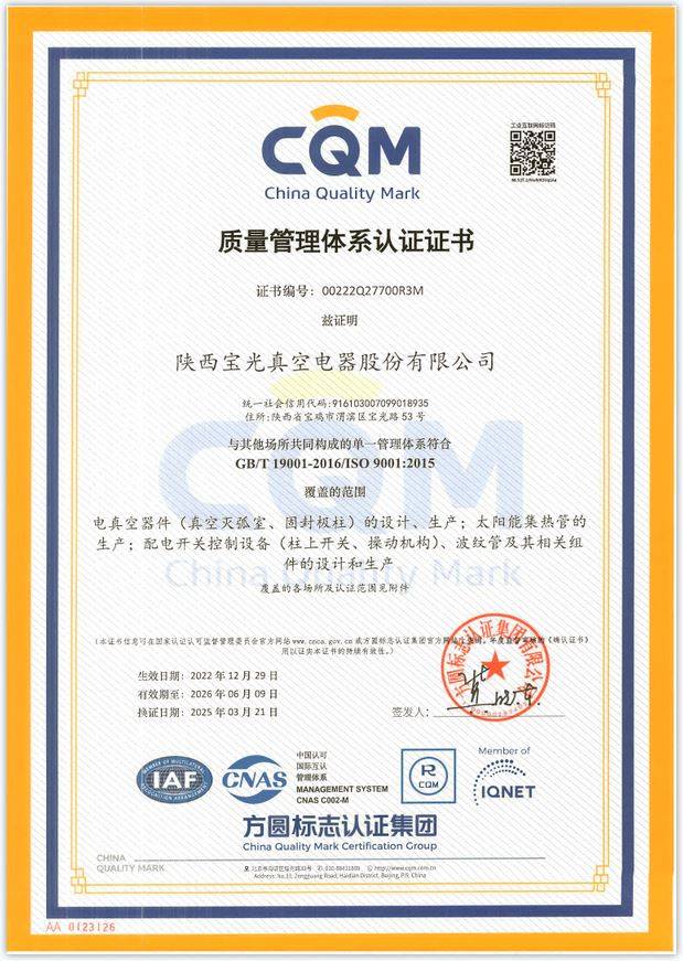 "Baoguang" brand series products include vacuum interrupter, embedded pole, electro-vacuum ceramic products, solar collector, hydrogen energy, energy storage, electrical supporting products with operating mechanisms as the core, and etc. The company main product vacuum interrupter covers a wide range of technical parameters which highlights the deep technical foundation and reliable quality of Baoguang VI. Baoguang actively implements the Belt and Road strategy, exports products to more than 40 countries and regions and keeps improving its export volume.
