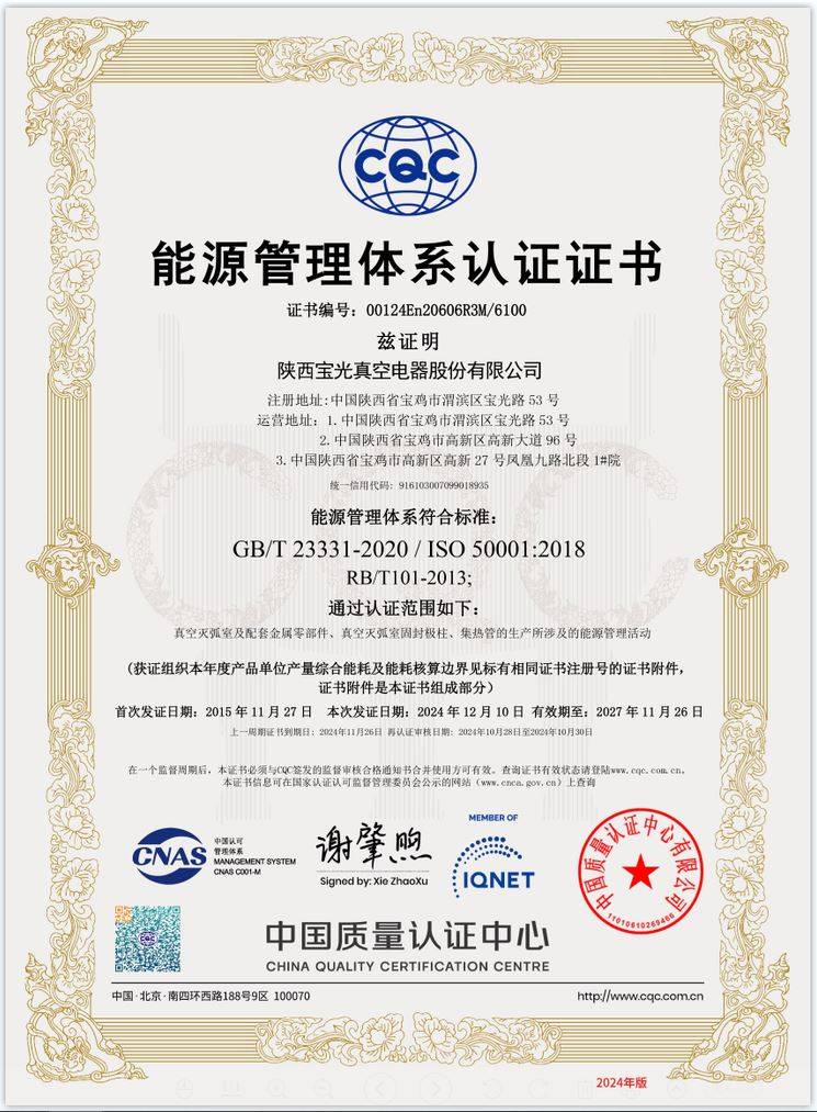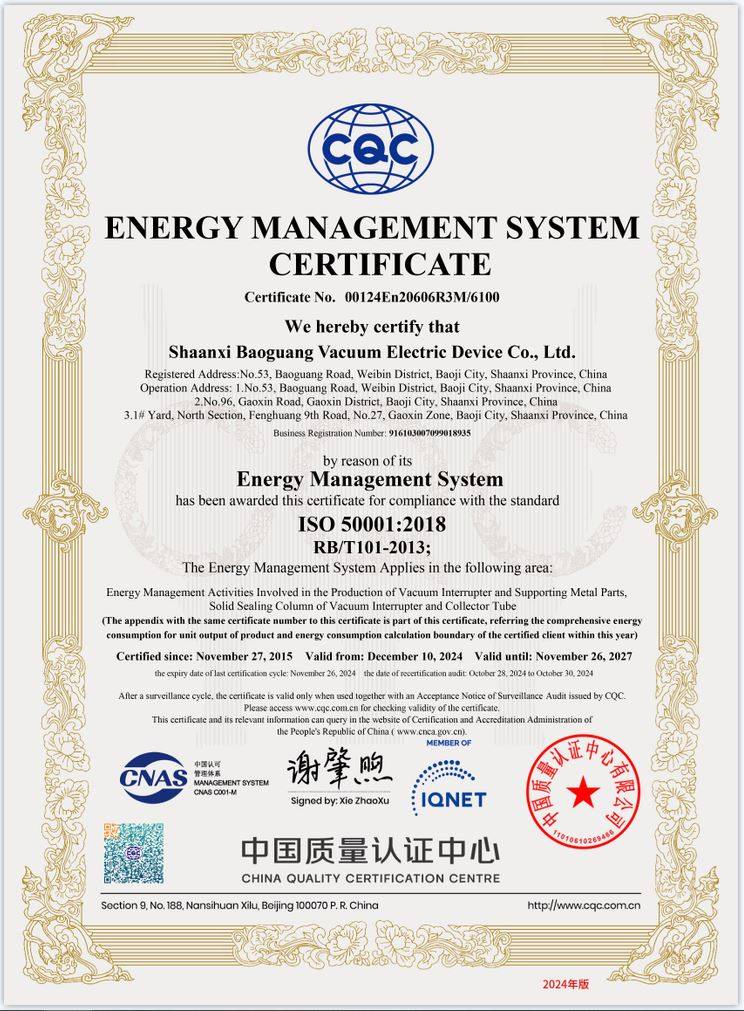 Baoguang has been a renowned brand and production base for vacuum interrupter in China and abroad, with market share dominating the top position of the industry for many years. Baoguang has been consecutively awarded as Single Champion Demonstration Enterprise in Manufacturing Industry (which means the highest honor for one single category product) by MIIT of China since 2017. "Baoguang brand" vacuum interrupter won the fifth Asia-Pacific Expo gold award, a first prize, a second prize for National Science and Technology Progress Prize and etc. Baoguang was honored as the National and Local United Engineering Research Center for Vacuum Electric Technology in 2015 and selected as an Excellent Supplier for Intelligent Manufacturing and Precise Delivery to the Customer by MIIT of China and the Demonstration Enterprise of the Intelligent Factory in Shaanxi Province in 2022. In 2023, Baoguang was selected as a key core technology industrialization project supported by the Shaanxi Provincial Department of Industry and Information Technology. At present, Baoguang main product—vacuum interrupter annual output has exceeded 1.4 million, with cumulative market sales over 14 million. Baoguang is aiming to be an international first class digital manufacturing enterprise of vacuum interrupters by taking advantage of the development opportunities of China's intelligent manufacturing and maintaining Baoguang's pure technical advantages and outstanding core competitiveness.