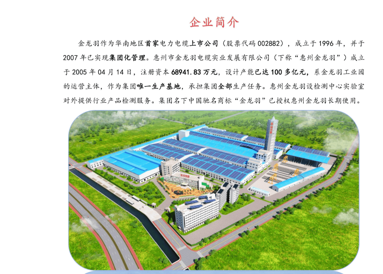 金龙羽作为华南地区唯一电力电缆上市公司(股票代码002882),成立于1996