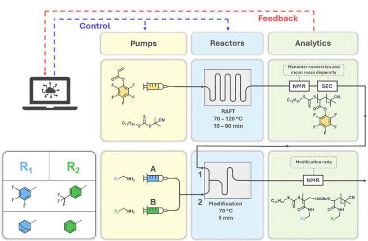 最近,该团队与卡尔斯鲁厄理工学院合作的研究成果进一步证明了自动驾驶实验室的潜力。在一项新发表的研究中,该自动化系统被用于精确合成聚(五氟苯基丙烯酸酯)(PFPA),为开发高性能材料奠定了基础。