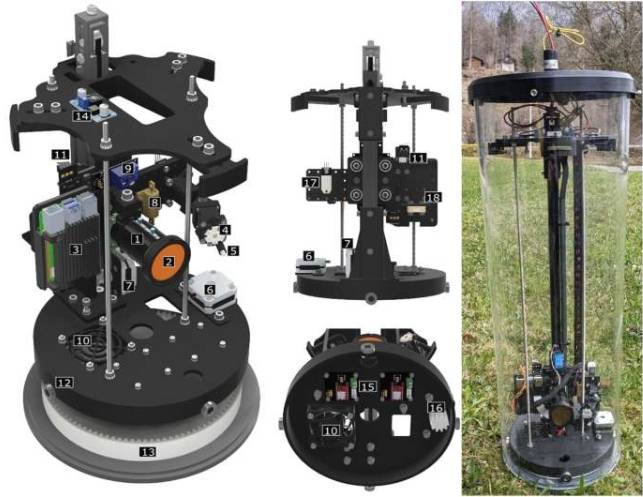 MARTINIS 的工作原理是,光极安装在埋入土壤的有机玻璃管外部,管内有与待检测物质波长相匹配的 LED 灯和记录光极发出光的摄像头,整个系统由一台 Raspberry Pi 电脑控制,可自动拍摄图像并控制移动,实现组件在管内上下移动和 360 度旋转。平面光极不仅能测量单个点,还能创建土壤化学条件的二维图像,且相机可移动按顺序拍摄图像,拼接出整个土壤剖面的“全景图”。