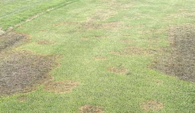 大斑病由真菌引发,主要侵害在较冷月份进入休眠状态的暖季型草坪草。病害初期呈现小而圆的斑块,斑块直径逐渐增大,受感染的草坪草会逐渐死亡,颜色变为黄色、橙色或棕色。