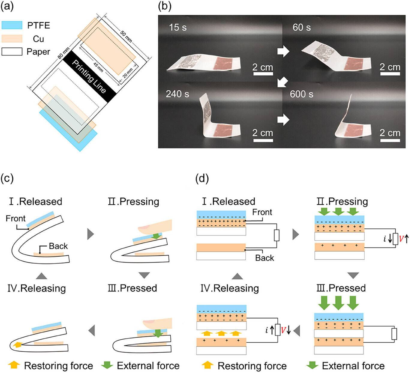 CO-TENG将摩擦电效应与自折叠技术相结合,实现了无需电池供电的传感器设计。该研究由芝浦工业大学副教授Hiroki Shigemune领导,与Haruki Higoshi先生和Daichi Naritomi先生合作完成。研究团队将铜电极和聚四氟乙烯片层压在纸上,并使用喷墨打印机将自折叠解决方案以线条形式打印在基板上。通过组装纸张成3D结构,研究人员成功实现了轻质、低成本、环保且自供电的传感器。
