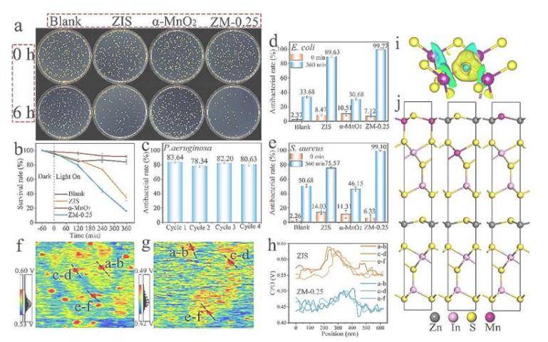 这种固态分解掺杂方法不仅使掺杂元素释放缓慢且均匀,还通过多种策略增强了Mn、Sv共掺杂ZIS的光催化活性。这一创新为光催化抗菌防污技术的发展提供了新的思路和方法。