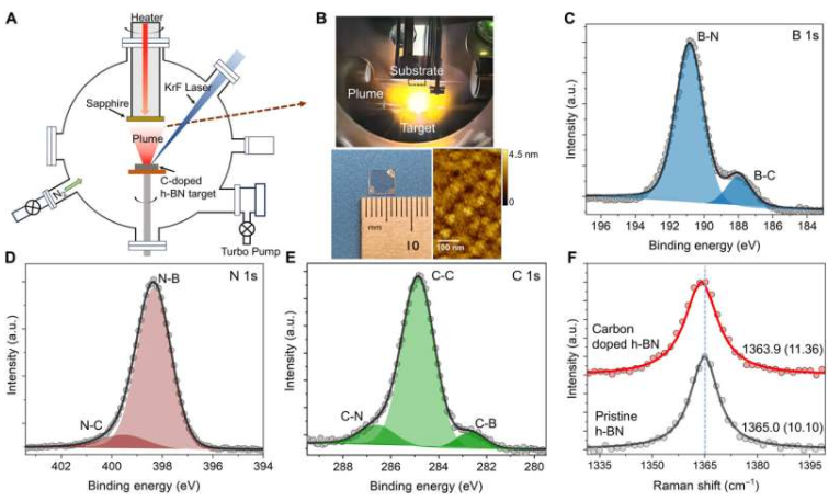 在《科学进展》杂志发表的新研究中,研究团队利用脉冲激光沉积(PLD)技术合成h-BN薄膜,并在沉积过程中特意添加碳原子。这些碳原子被编织到h-BN的原子晶格中,产生缺陷或不规则性,而这些缺陷恰恰能够作为坚固可靠的SPE发挥作用。