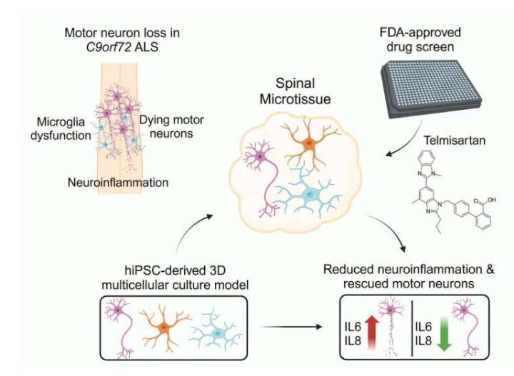 更多信息: Berkiye Sonustun 等人,替米沙坦通过抑制神经炎症在 hiPSC 衍生的 C9orf72 ALS 脊髓微组织模型中发挥神经保护作用,《干细胞报告》 (2025)。期刊信息: 干细胞报告