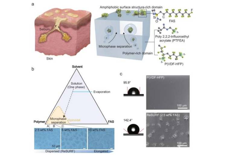 新加坡国立大学设计与工程学院材料科学与工程系副教授Benjamin Tee带领的研究小组,受人体皮肤油性保护层生物功能启发,将这一概念转化为名为ReSURF的多功能材料。该材料可通过快速微相分离法制备,能自发形成防水界面,具有自主修复和可回收利用特性。相关材料设计和新型水质传感器性能发表在《自然通讯》上。