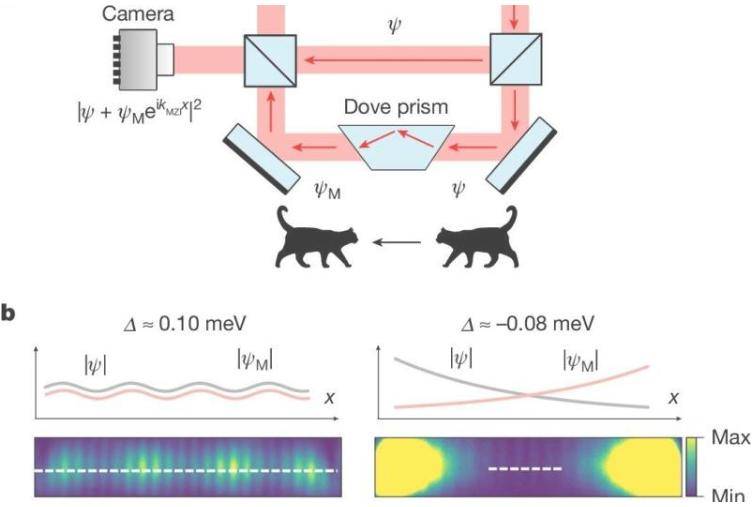 该装置由一对特制的镜子夹在一起构成。下方的镜子上蚀刻有纳米级斜面和一对平行波导。通过用激光照射斜面,研究人员可以产生光子并控制其动量。