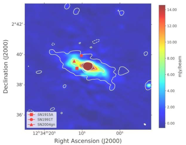 加兰特团队成功探索了NGC 4527的大规模辐射及其中心区域。结果表明,在大规模范围内,700和1230 MHz的射电辐射沿着恒星盘方向移动,没有射电晕的迹象。整个恒星盘的谱指数值表明存在多环芳烃(PAH)。