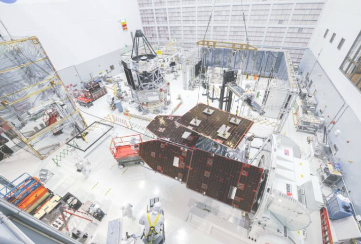 太阳能电池阵列遮阳板由六块覆盖有太阳能电池的面板组成,其中两块中心面板固定于天文台外筒组件,其余四块将在进入太空后展开。这些面板不仅为天文台提供电力,还能遮挡阳光,帮助仪器保持低温,对红外天文观测至关重要。NASA戈达德太空飞行中心太阳能电池阵列遮阳板负责人杰克·马歇尔表示:“目前,该天文台已完成约90%,我们只需连接两个大型组件,随后将进行一系列测试。”他透露,发射计划比原定的不迟于2027年5月的日期提前了几个月,团队正争取最早于2026年秋季发射。