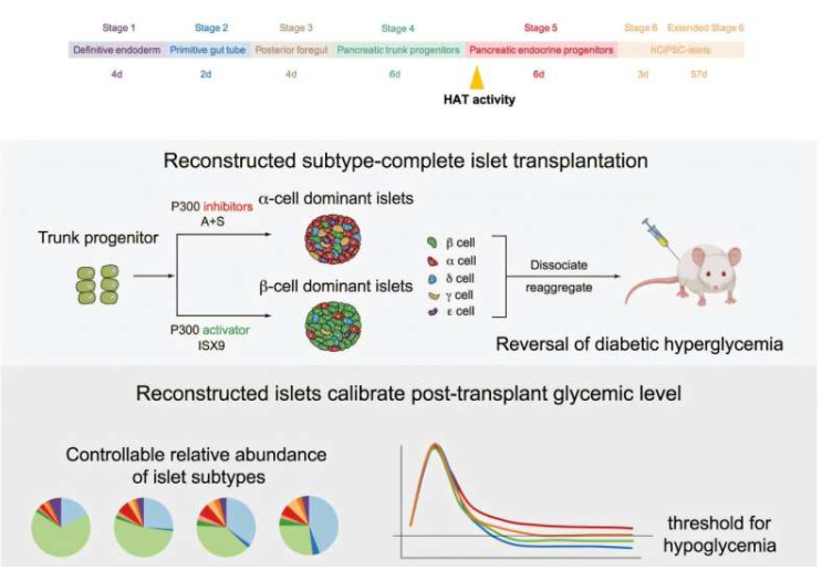 该研究建立了首个能够精确调控五种内分泌细胞比例的胰岛制备系统。研究表明,胰岛的安全性和有效性不仅取决于β细胞数量,更依赖于各种内分泌细胞类型的协调配合。整合平衡非β内分泌细胞对于恢复双向血糖控制至关重要。