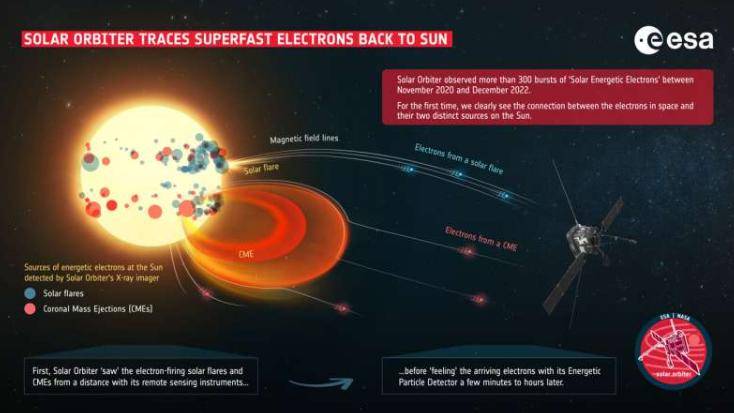 太阳轨道飞行器任务由欧洲航天局引领,成功将太阳向太空释放的大量高能粒子,即“太阳高能电子”(SEE),依据其来源划分为两组,每组均对应太阳不同类型的爆发活动。太阳作为太阳系内能量最为充沛的粒子加速器,能将电子加速至接近光速,并抛射至太空,使太阳系充斥着SEE。