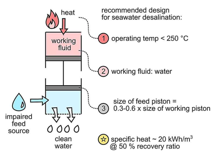 该研究团队首次分析了热驱动反渗透技术的热力学极限,通过优化工作流体与海水比例及活塞尺寸等要素,证明了该方法比先前预想更具性能潜力。与传统电力反渗透每立方米消耗1-4千瓦时电能相比,热驱动技术目前需20千瓦时热能,但由于热能成本较低,仍具应用价值。