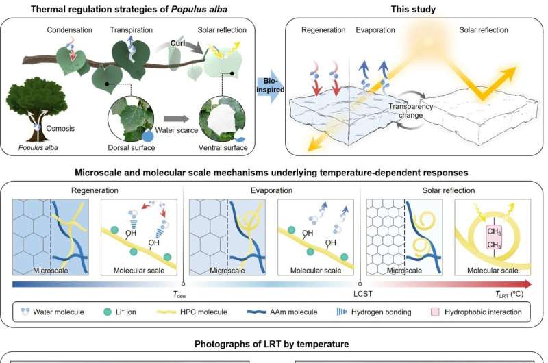 韩国科学技术院科研团队受白杨树叶片热调节机制启发,成功开发出一种基于仿生水凝胶的潜辐射恒温器。该仿生水凝胶材料通过模拟植物应对环境变化的自然策略,为建筑节能领域提供了新型无源热管理方案。这项研究成果已发表于《先进材料》期刊。