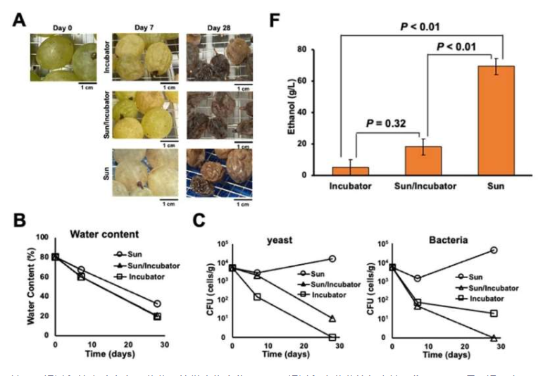 研究团队将新鲜葡萄晾晒28天制成葡萄干,分别采用日晒、烘箱及混合干燥三种方式处理。随后将葡萄干浸泡于水中,在室温环境下装瓶观察两周。研究显示,所有经日晒干燥的样品均成功完成葡萄干发酵研究实验目标,乙醇浓度显著高于其他处理方式。