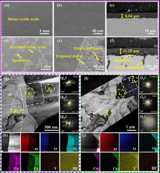研究团队采取双重策略突破这一局限。在初始氧化阶段,通过优化共晶铝含量设计出精细层状微观结构合金,增强早期氧化过程中铝的持续供应,促进连续保护性α-Al₂O₃氧化层快速形成。在稳态氧化阶段,调整钴、铬、镍元素比例以提升构型熵,制备出多主元合金。该合金在热生长氧化层下方形成的铝耗尽区呈现严重晶格畸变,空位形成能升高,铝扩散能垒提高,从而有效抑制高温氧化进程。
