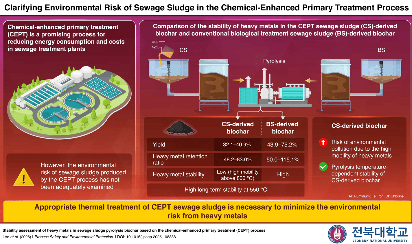 出版详情:作者:Jeonbuk National University;标题:《Researchers reveal safer way to manage chemical sewage sludge using pyrolysis》;发表于:《Process Safety and Environmental Protection》(2026)。
