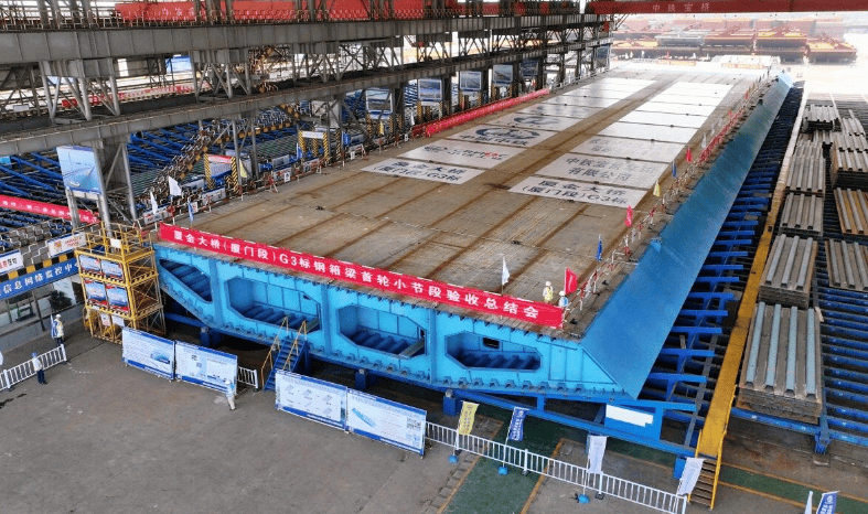 在多项国家重点桥梁工程中,该技术体系实现落地应用。张靖皋长江大桥钢塔及观音寺长江大桥钢壳制造过程中,针对焊缝外观要求高的特点,研发了履带式协作机器人移动工作站、电驱升降焊接平台,实现横隔板单元圆弧焊缝、钢壳棱角焊缝的自动化焊接,取得“一种双层密集网格加劲壁板索塔钢壳块体自动化焊接方法”“一种超大截面钢结构桥塔工地自动化焊接方法”两项发明专利授权。厦金大桥钢箱梁制造过程中,针对U肋槽口焊缝数量密集、焊接位置复杂等特征,研发钢箱梁U肋槽口AI视觉识别焊缝搭载轻量化电驱滑轨焊接系统,实现多个槽口连续自动化焊接。