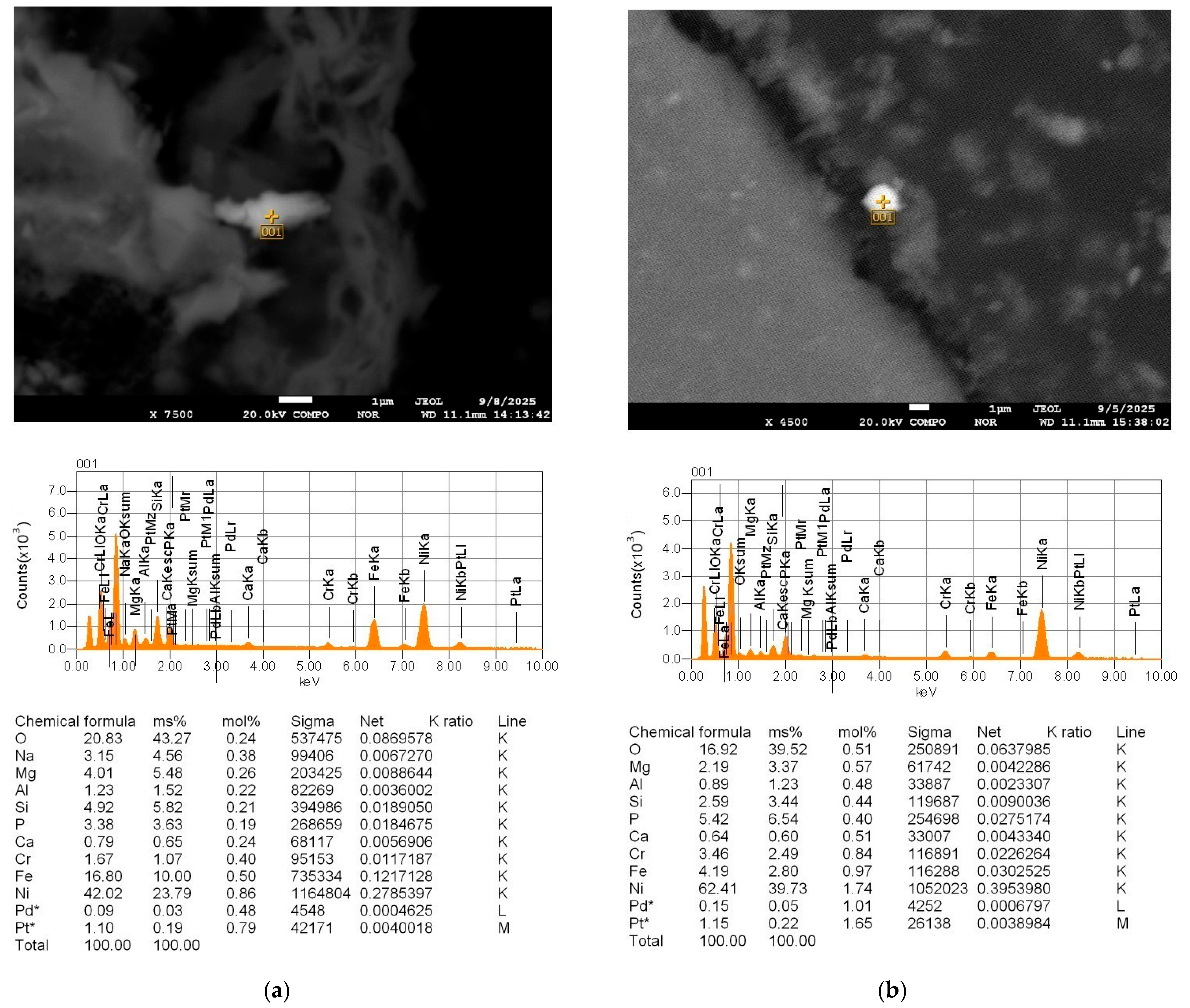 扫描电镜-电子探针显微分析揭示了一个关键发现:铂族金属选择性地富集在含镍的显微包裹体中,镍富集区域的局部铂含量高达3.8 wt.%。