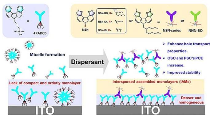台湾大学研究团队在《美国化学会志》发表创新成果,开发出适用于钙钛矿和有机太阳能电池的通用界面技术。这项研究通过引入散布组装单分子层(IAM)策略,同步提升了两种太阳能电池的转换效率和稳定性。 传统自组装单分子层...
