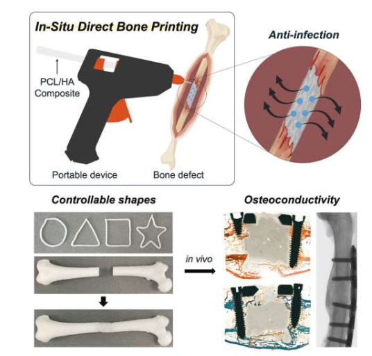 韩国成均馆大学研究团队开发出一种手持式原位3D打印装置,可在手术过程中直接为骨折部位打印定制化骨移植支架。该项研究成果发表于《设备》期刊,为骨缺损修复提供了新的技术方案。 该装置基于改良胶枪结构,使用羟基磷灰...
