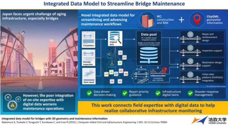日本法政大学研究团队开发出新型基础设施数字孪生系统,通过整合三维几何数据与维护信息提升桥梁管理效率。这项基础设施数字孪生系统融合国际