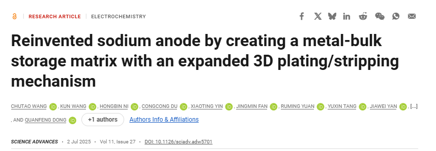 厦门大学团队提出重建金属阳极概念,为储能电池发展提供新路径