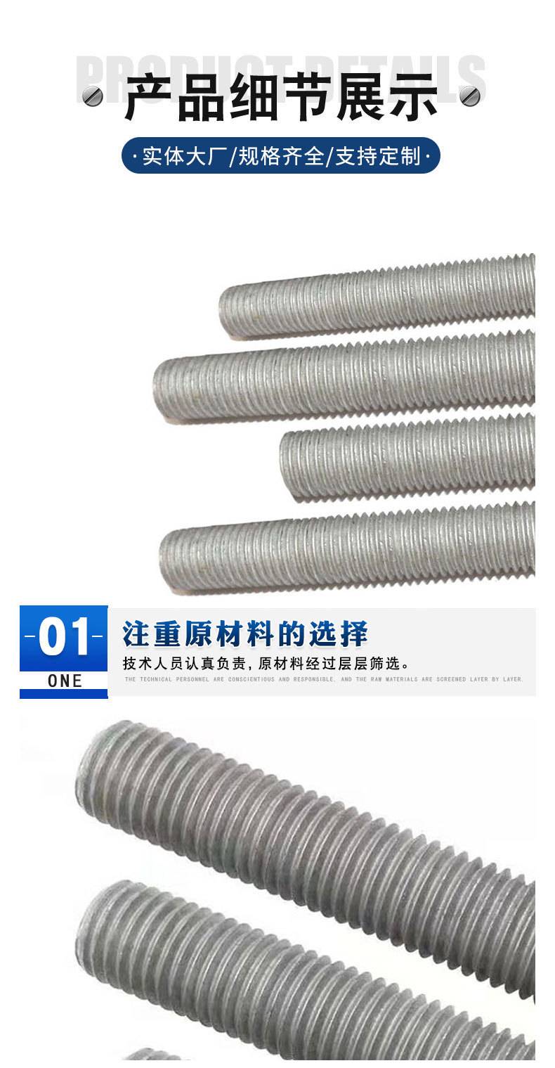 热镀锌丝杠 全螺纹全螺柱热浸锌牙条1米3米M8M10M12通丝螺杆厂家