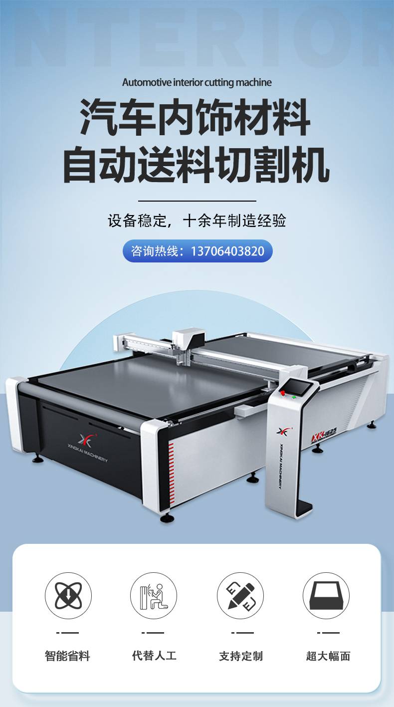济南星凯机械设备有限公司是一家数控切割机生产厂家,向企业提供高品质的数控切割机、振动刀切割机 、旋转刀 、圆刀切割机、 自动寻边切割机,全景视觉定位切割机,布,皮革数控切割机等非标型振动刀切割设备及完善的技术服务,涉及复合材料、汽车内饰、汽车脚垫 、皮革、印花地毯地垫、太阳能、亚克力材料、密度板、耐火材料、硅胶、电子材料、纺机、电器、面料等应用领域。