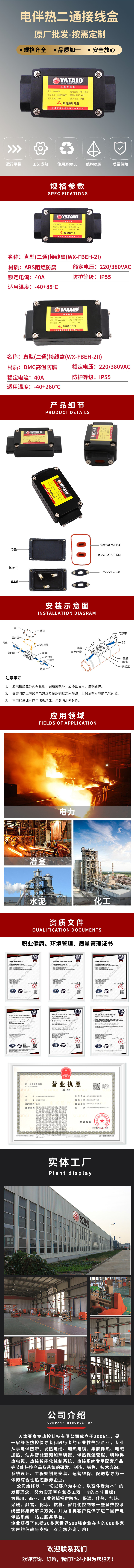 用于电伴热带与电伴热带的连接,增加电伴热带的长度或同在同一管线上配用不同功率的电伴热带及三叉管线等较复杂场合。