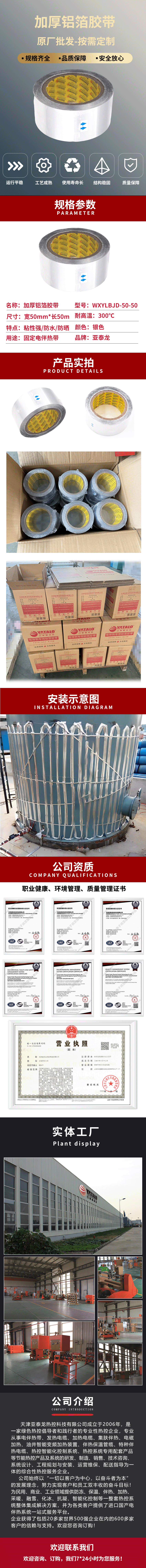加厚铝箔胶带是在铝箔带上涂复一层特殊的胶粘剂,用于沿电伴热带走向固定电伴热带,使其充分接触伴热物体,增大电热带的散热面,提高热传导;同时用于固定温控器的感温包。