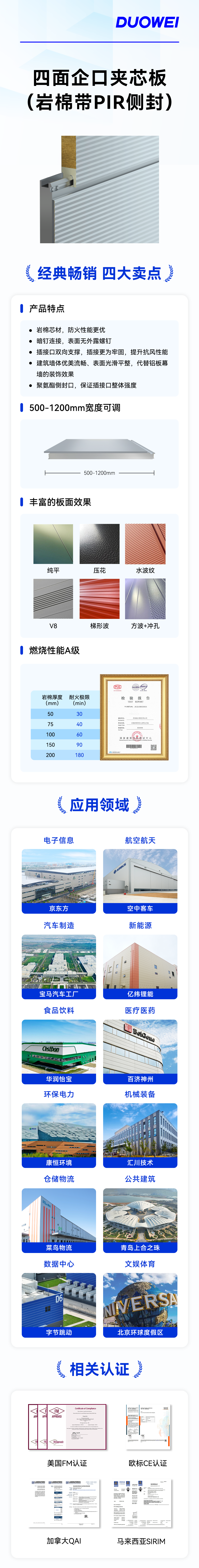 四面企口金属幕墙夹芯板(岩棉+PIR侧封)