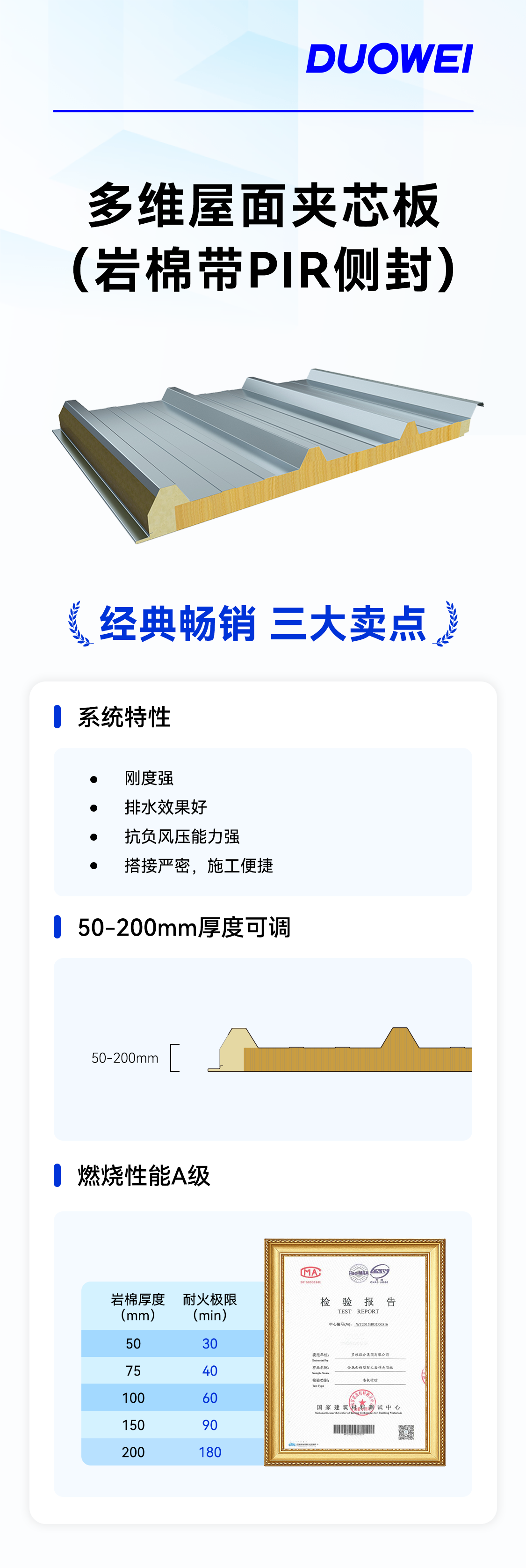 屋面夹芯板(岩棉+PIR侧封)