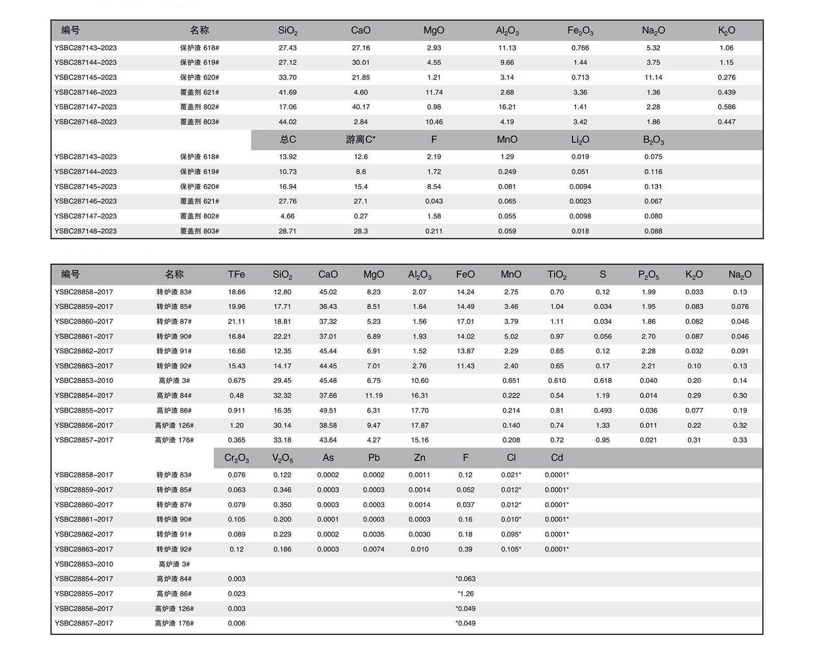 炉渣、保护渣、覆盖剂标准样品/标准物质