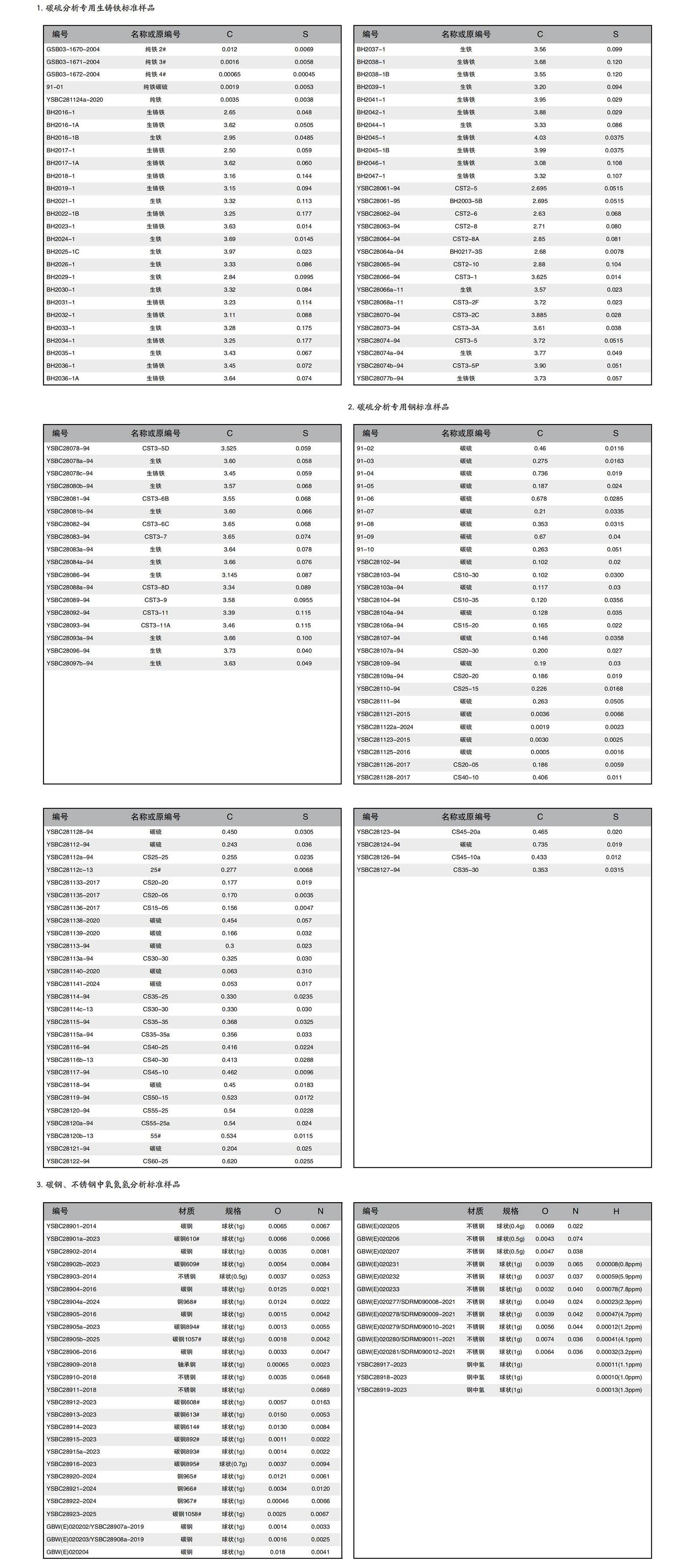 生铁、铸铁、碳钢、合金钢、不锈钢化学分析标准样品/标准物质