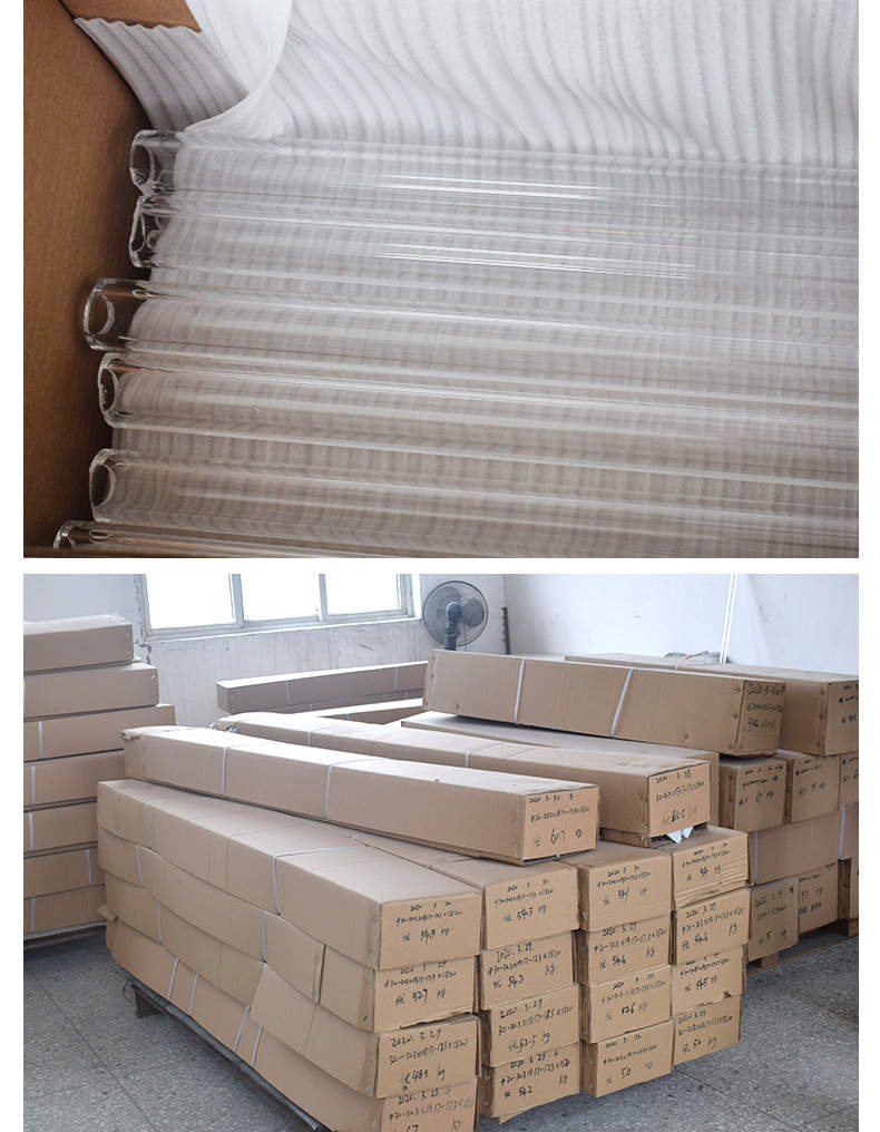 公司专注于多元化石英制品的创新与制造,产品矩阵涵盖透明石英管、乳白石英管、石英棒、石英套管、石英仪器及异形定制化产品(如球形管、彩色管、复杂弯管等)。其中,透明石英管作为拳头产品,涵盖外径1.5-160mm、壁厚0.5-15mm、长度10-3000mm的全规格系列,具有良好的化学稳定性、热稳定性及抗析晶性能,光学透过率高。针对差异化需求,公司还推出滤紫外、无臭氧等特种石英管,广泛应用于半导体、光学仪器、照明及新能源等高科技领域。品质赋能,智造未来