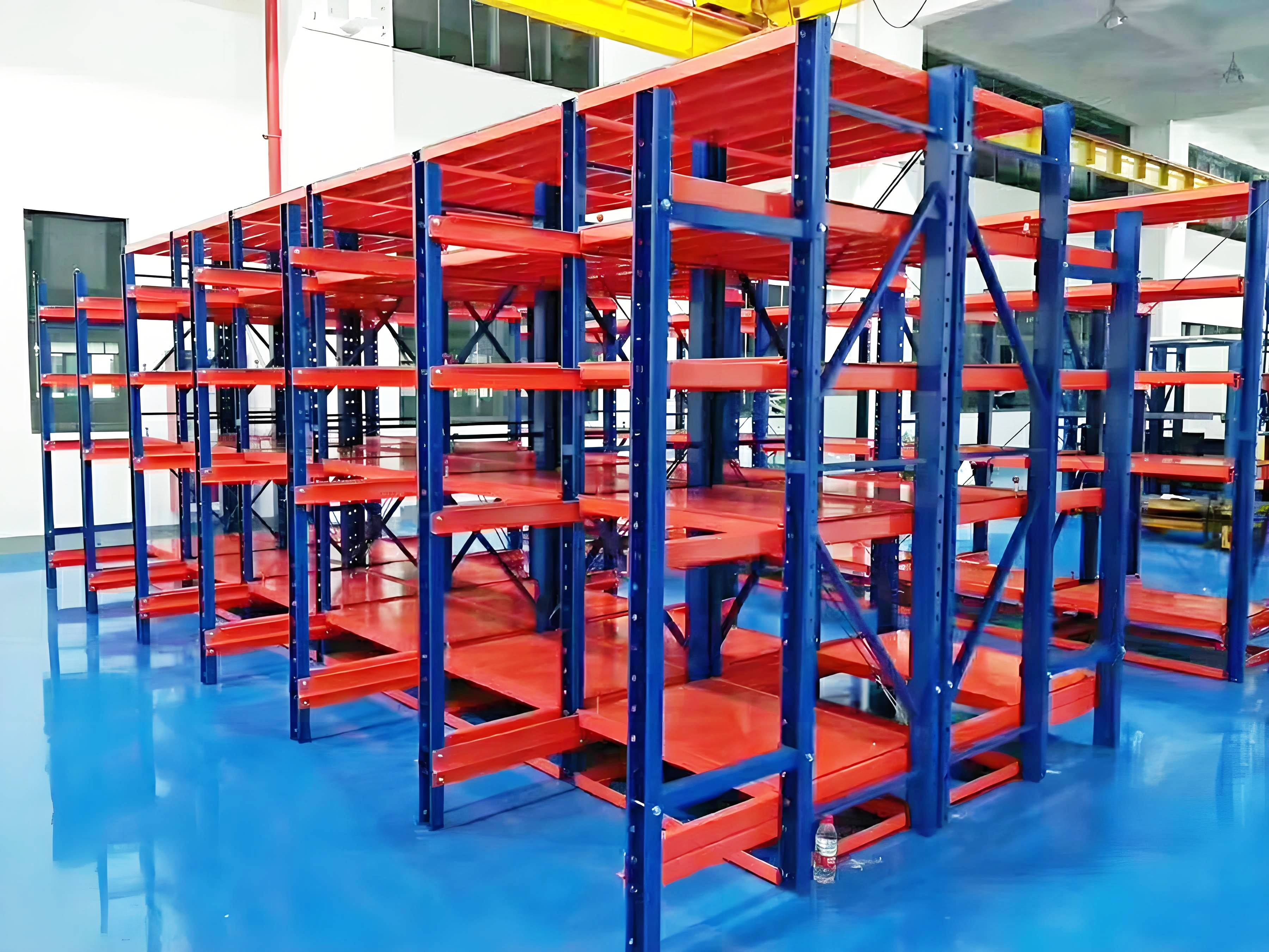 模具货架由多种组合部件组装而成,结构简单,便于拆卸、运输和组装;抽屉板下设置滚轮轨道,承载后依然能用很小的力气自如的拉动,滑动平稳,附加定位保险装置;安全可靠,可以66%抽出,每层可存载500~2000kg;抽屉式货架占地少、载重大、分类详细、操作简便,用于存放模具,无需叉车,顶部选配手拉葫芦移动车便可实现模具的起吊;广泛适用于模具等机械加工装备的存放;是现代化工厂不可缺少的存储用品。