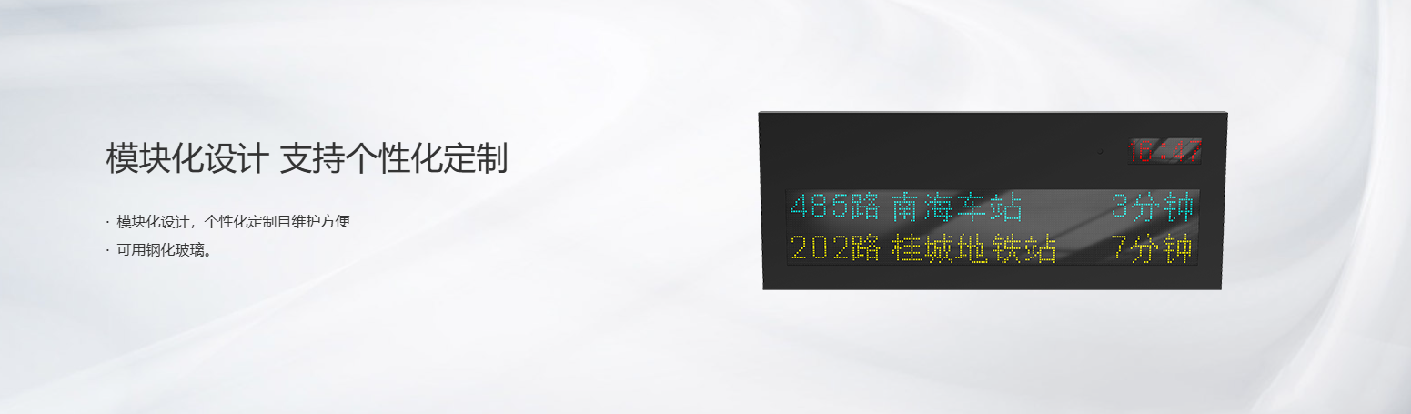 站台屏是候车区入口或进展检票口上方的显示屏,一般显示内容有:车次、始发站、终点站、开点、检票口、状态等。